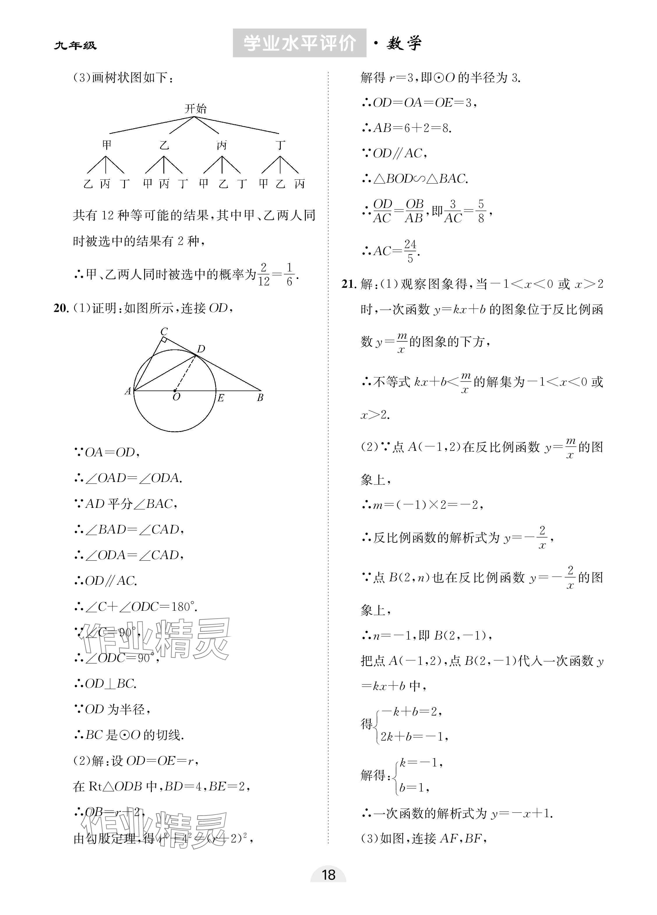 注:目前有些书本章节名称可能整理的还不是很完善,但都是按照顺序排列的,请同学们按照顺序仔细查找。练习册 2025年学业水平评价九年级数学下册人教版 答案主要是用来给同学们做完题方便对答案用的,请勿直接抄袭。