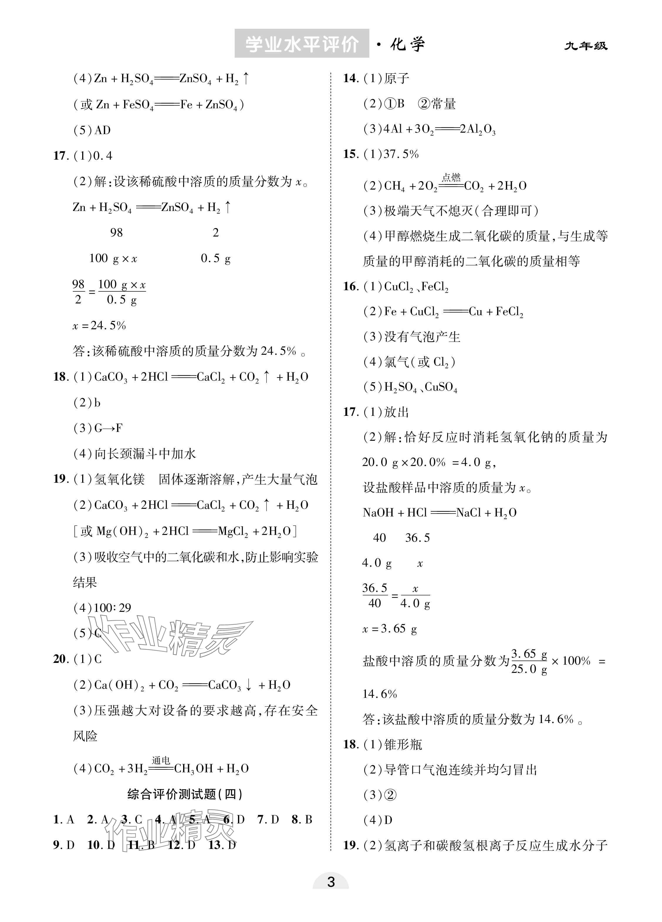 注:目前有些书本章节名称可能整理的还不是很完善,但都是按照顺序排列的,请同学们按照顺序仔细查找。练习册 2025年学业水平评价九年级化学下册人教版 答案主要是用来给同学们做完题方便对答案用的,请勿直接抄袭。