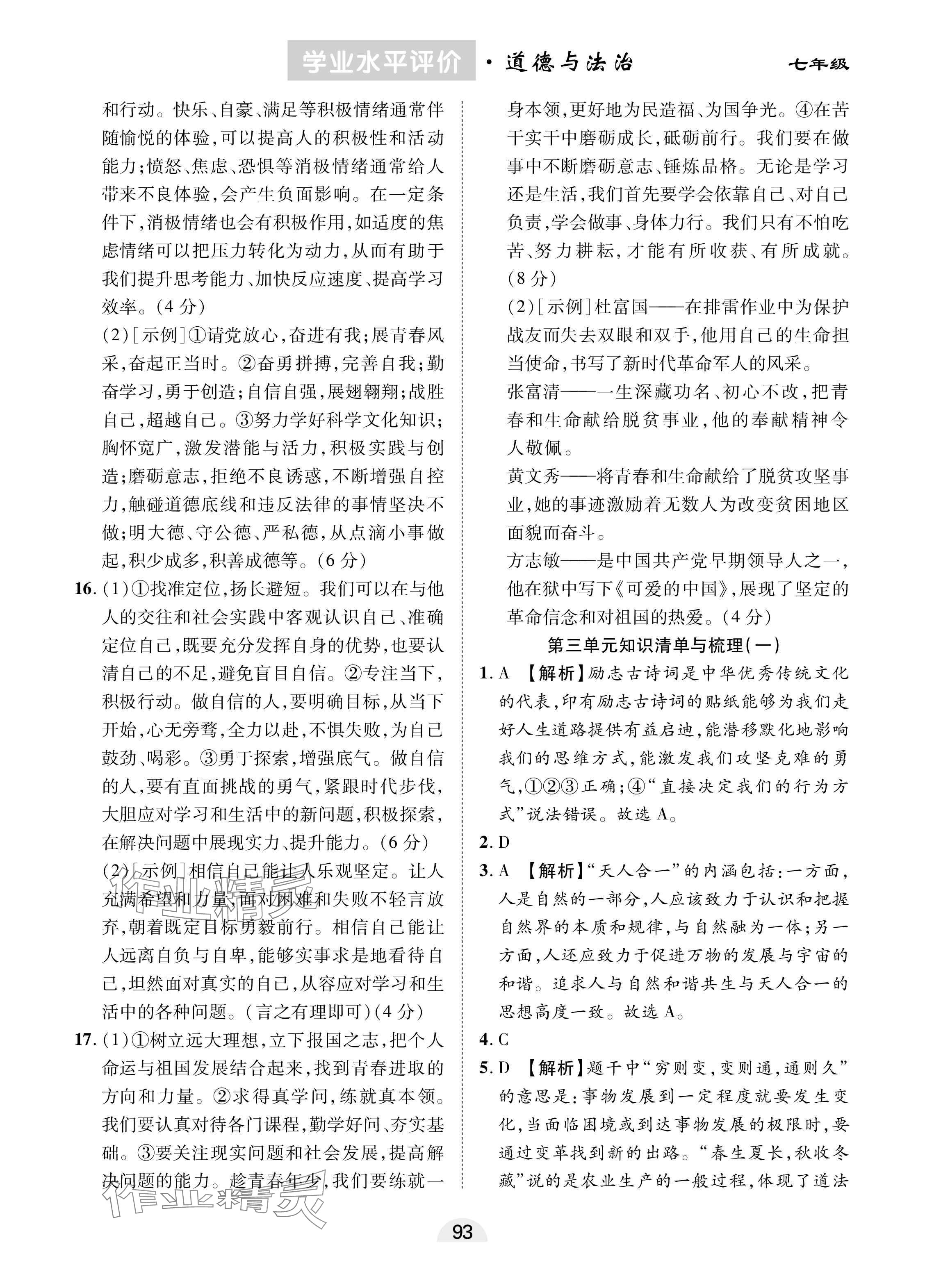 注:目前有些书本章节名称可能整理的还不是很完善,但都是按照顺序排列的,请同学们按照顺序仔细查找。练习册 2025年学业水平评价同步检测卷七年级道德与法治下册人教版 答案主要是用来给同学们做完题方便对答案用的,请勿直接抄袭。