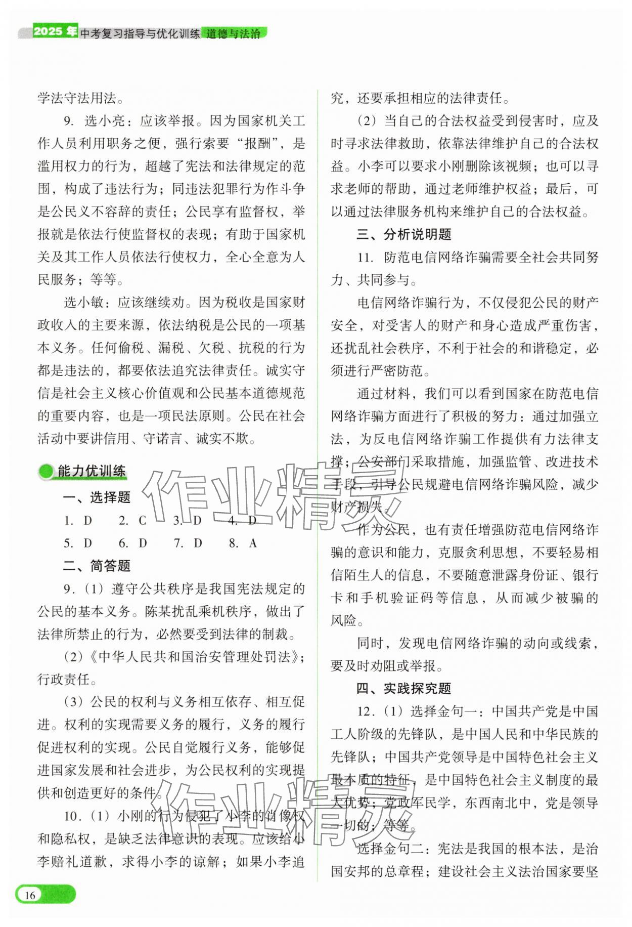 注:目前有些书本章节名称可能整理的还不是很完善,但都是按照顺序排列的,请同学们按照顺序仔细查找。练习册 2025年中考复习指导与优化训练道德与法治 答案主要是用来给同学们做完题方便对答案用的,请勿直接抄袭。