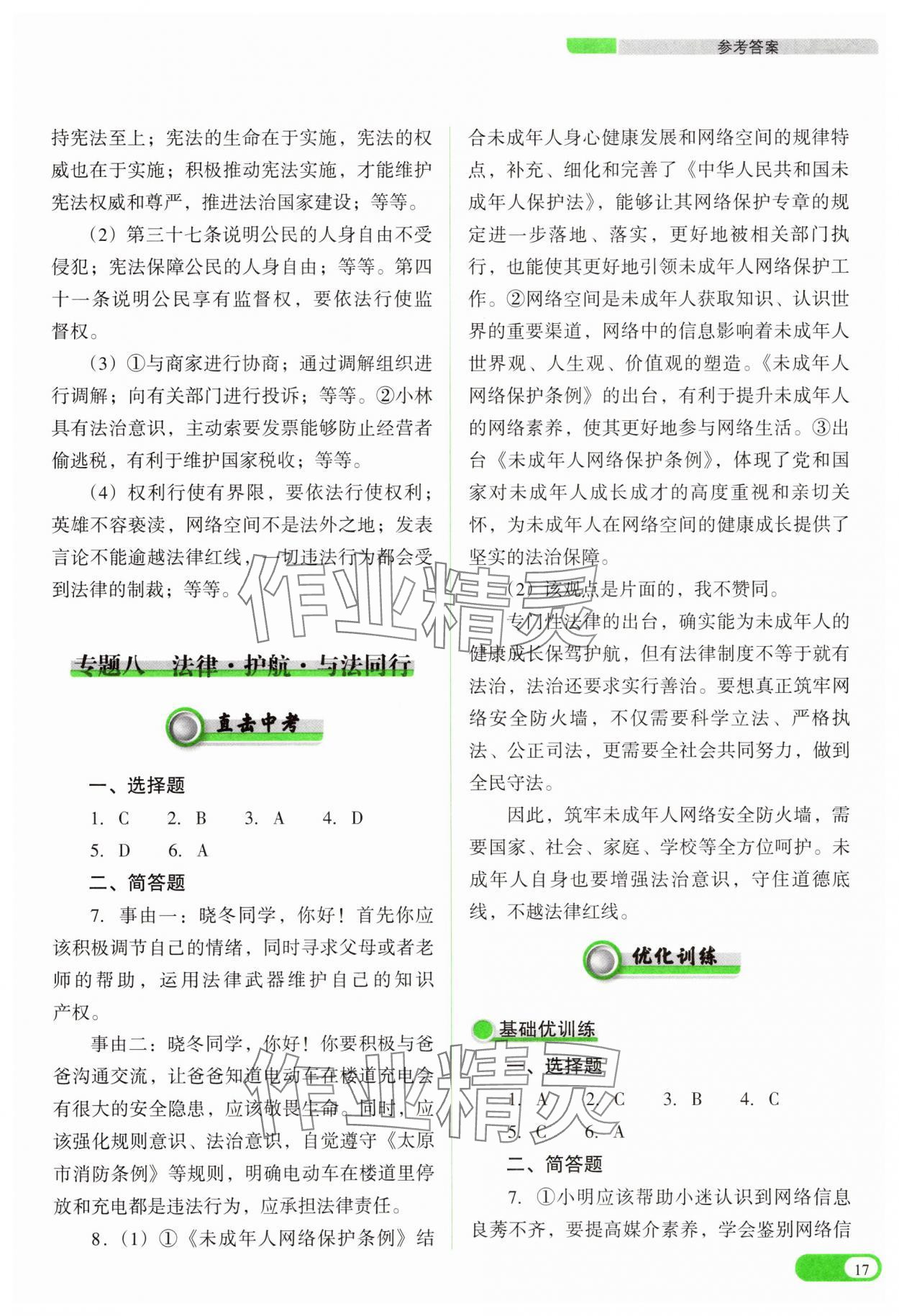 注:目前有些书本章节名称可能整理的还不是很完善,但都是按照顺序排列的,请同学们按照顺序仔细查找。练习册 2025年中考复习指导与优化训练道德与法治 答案主要是用来给同学们做完题方便对答案用的,请勿直接抄袭。