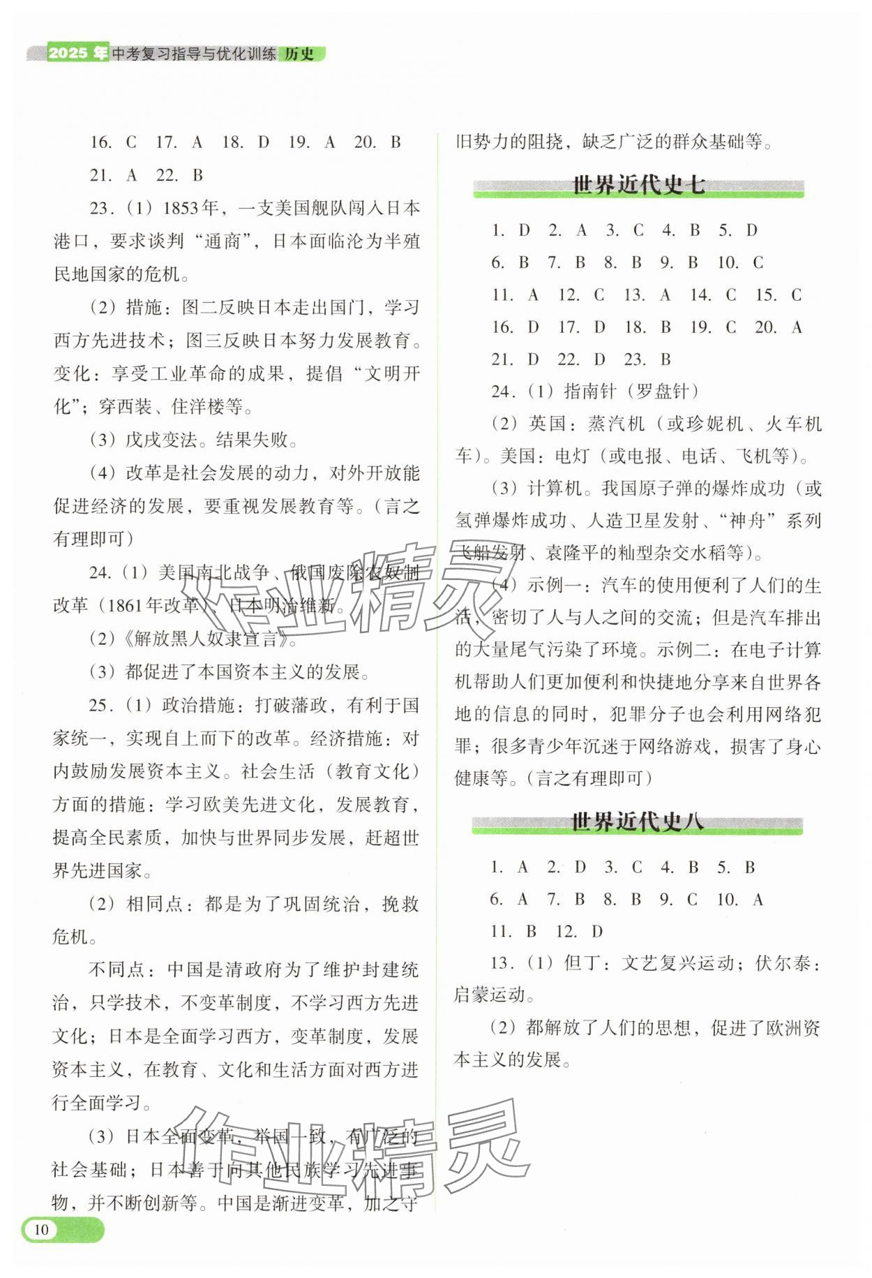 注:目前有些书本章节名称可能整理的还不是很完善,但都是按照顺序排列的,请同学们按照顺序仔细查找。练习册 2025年中考复习指导与优化训练历史 答案主要是用来给同学们做完题方便对答案用的,请勿直接抄袭。