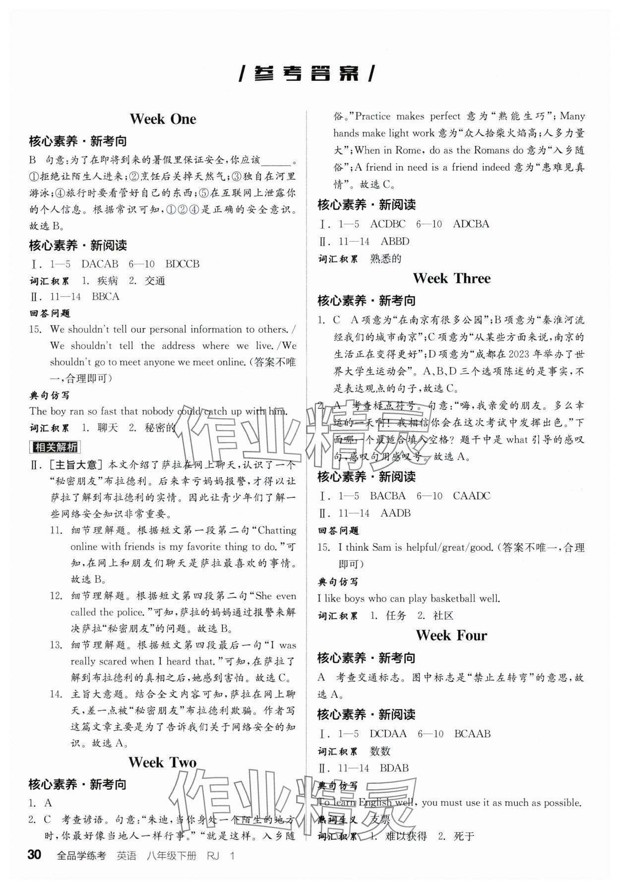 注:目前有些书本章节名称可能整理的还不是很完善,但都是按照顺序排列的,请同学们按照顺序仔细查找。练习册 2025年全品学练考八年级英语下册人教版陕西专版 答案主要是用来给同学们做完题方便对答案用的,请勿直接抄袭。