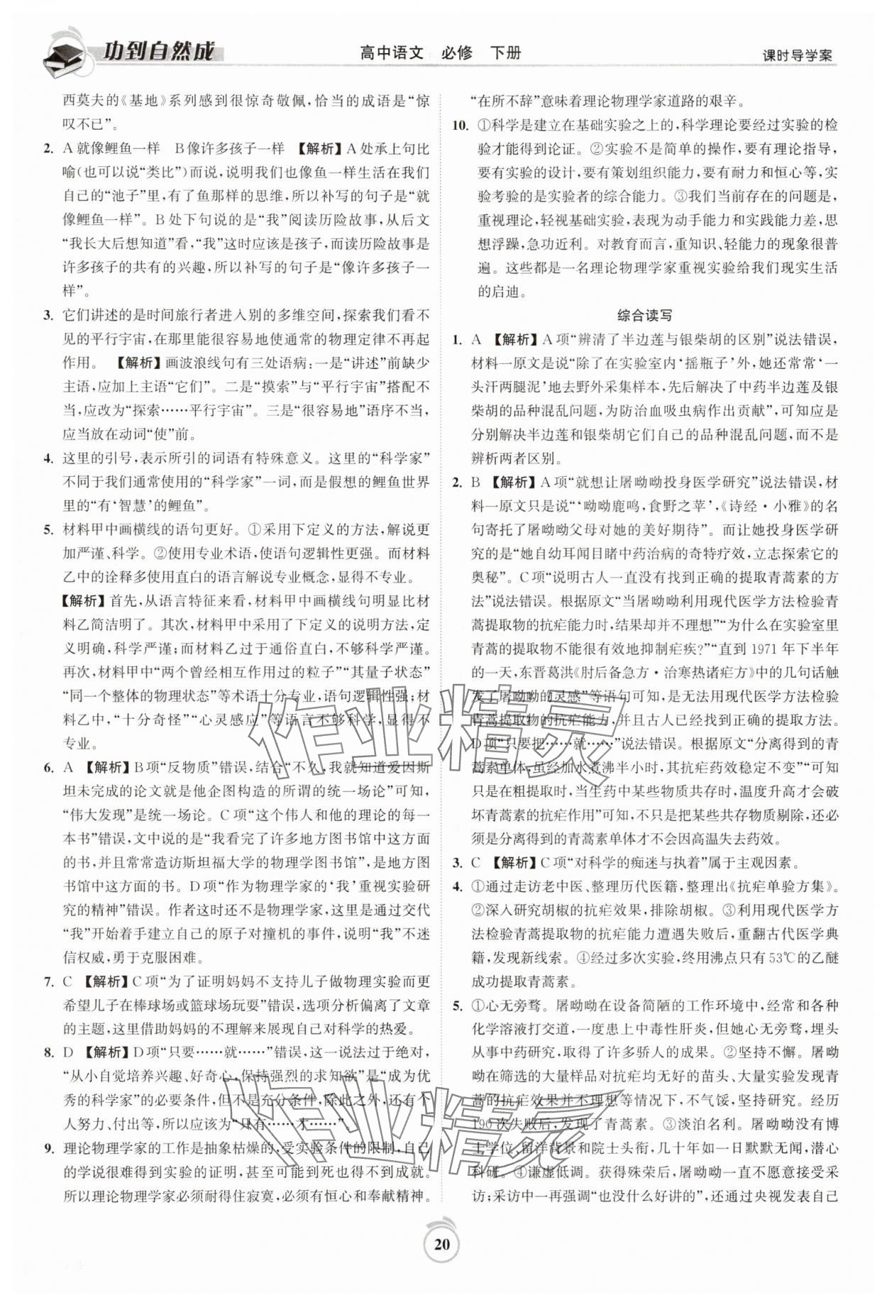 注:目前有些书本章节名称可能整理的还不是很完善,但都是按照顺序排列的,请同学们按照顺序仔细查找。练习册 2025年功到自然成课时导学案高中语文必修下册 答案主要是用来给同学们做完题方便对答案用的,请勿直接抄袭。