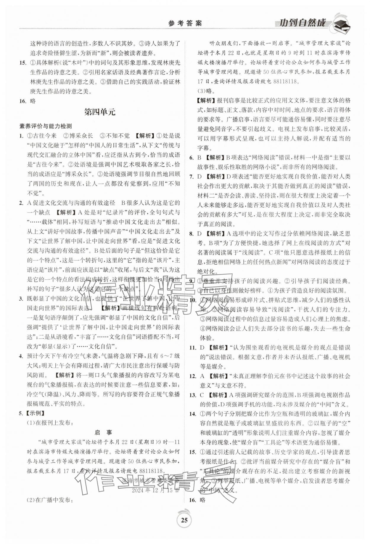 注:目前有些书本章节名称可能整理的还不是很完善,但都是按照顺序排列的,请同学们按照顺序仔细查找。练习册 2025年功到自然成课时导学案高中语文必修下册 答案主要是用来给同学们做完题方便对答案用的,请勿直接抄袭。