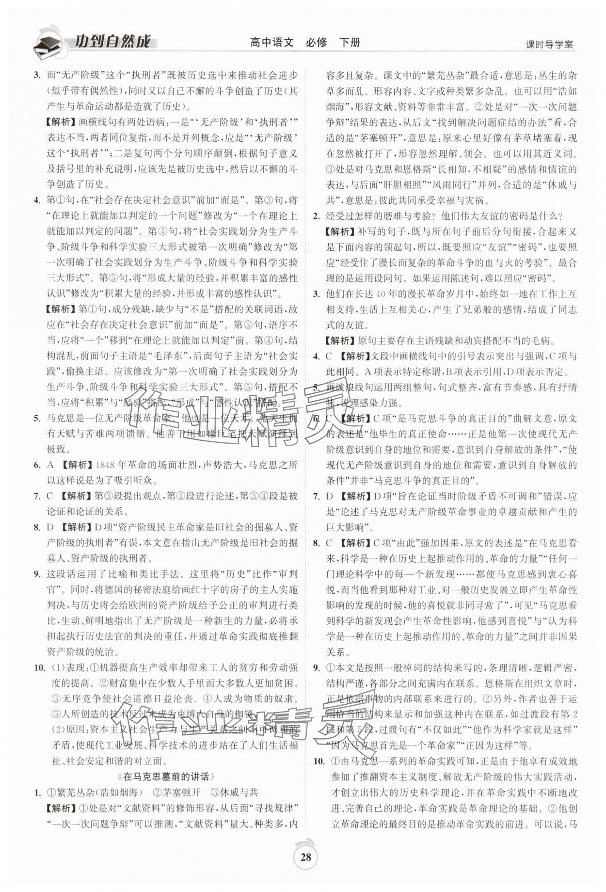 注:目前有些书本章节名称可能整理的还不是很完善,但都是按照顺序排列的,请同学们按照顺序仔细查找。练习册 2025年功到自然成课时导学案高中语文必修下册 答案主要是用来给同学们做完题方便对答案用的,请勿直接抄袭。