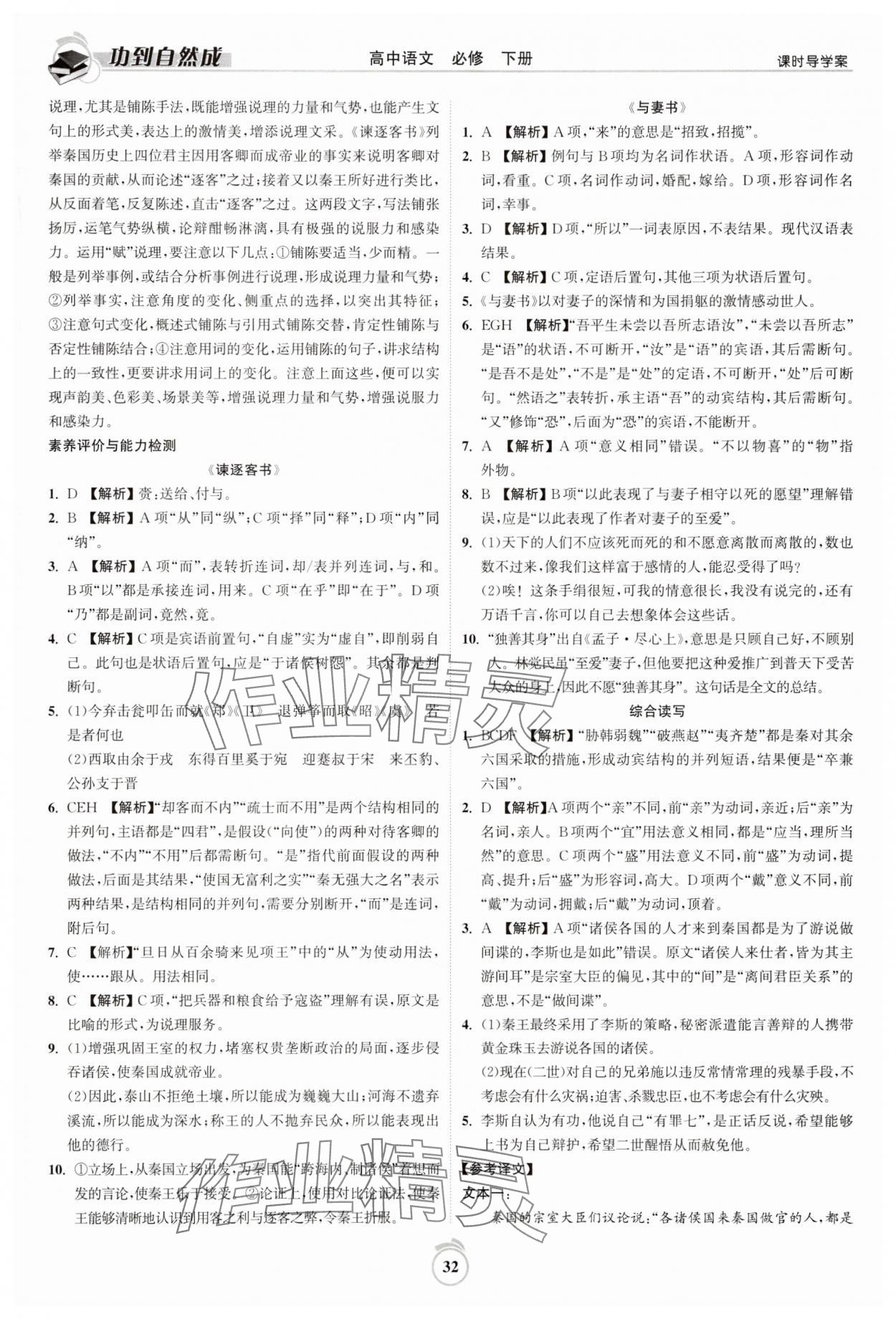 注:目前有些书本章节名称可能整理的还不是很完善,但都是按照顺序排列的,请同学们按照顺序仔细查找。练习册 2025年功到自然成课时导学案高中语文必修下册 答案主要是用来给同学们做完题方便对答案用的,请勿直接抄袭。