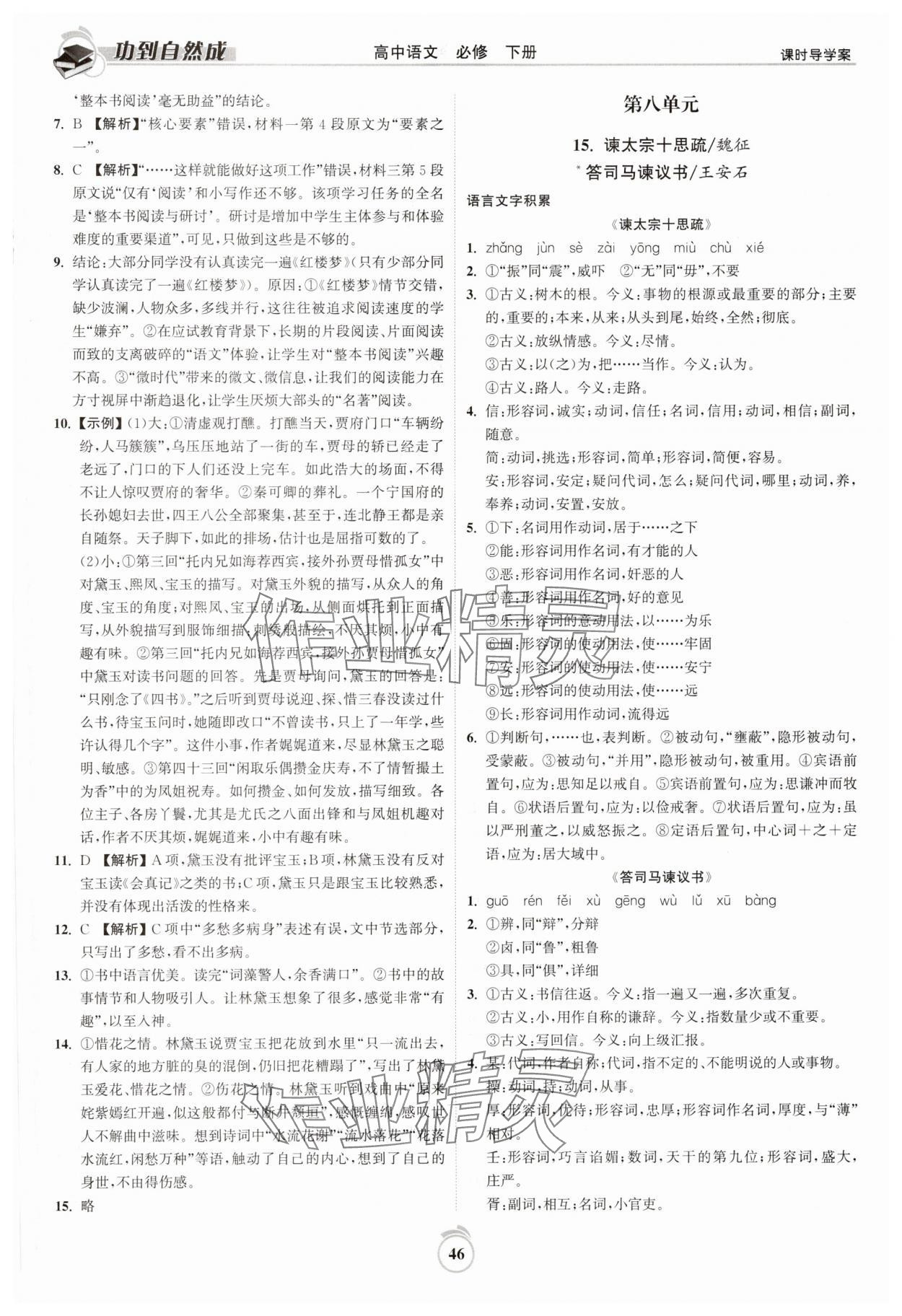 注:目前有些书本章节名称可能整理的还不是很完善,但都是按照顺序排列的,请同学们按照顺序仔细查找。练习册 2025年功到自然成课时导学案高中语文必修下册 答案主要是用来给同学们做完题方便对答案用的,请勿直接抄袭。