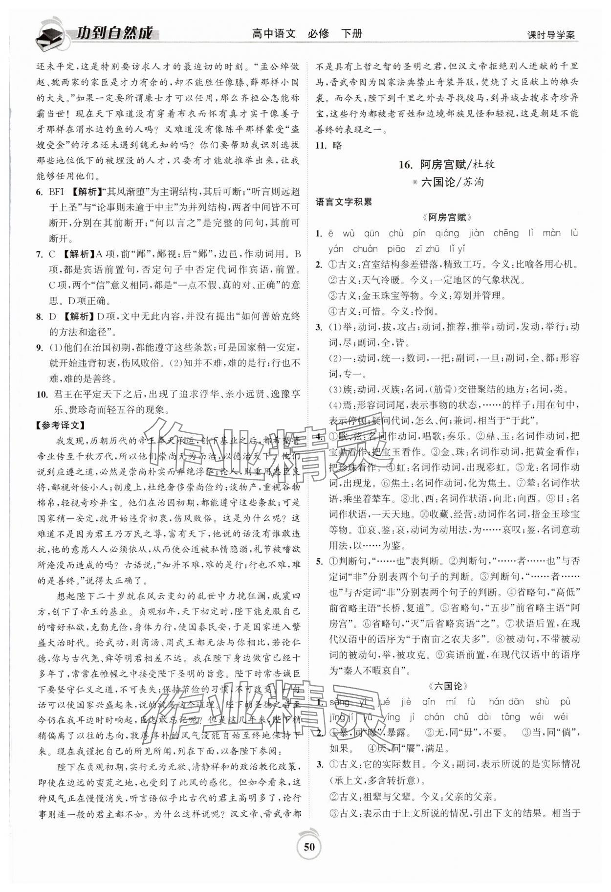 注:目前有些书本章节名称可能整理的还不是很完善,但都是按照顺序排列的,请同学们按照顺序仔细查找。练习册 2025年功到自然成课时导学案高中语文必修下册 答案主要是用来给同学们做完题方便对答案用的,请勿直接抄袭。