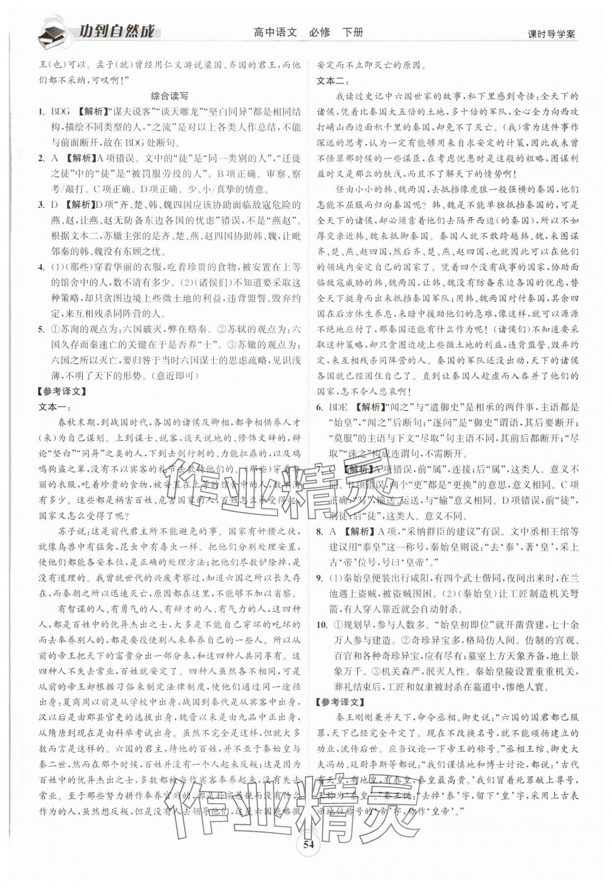 注:目前有些书本章节名称可能整理的还不是很完善,但都是按照顺序排列的,请同学们按照顺序仔细查找。练习册 2025年功到自然成课时导学案高中语文必修下册 答案主要是用来给同学们做完题方便对答案用的,请勿直接抄袭。