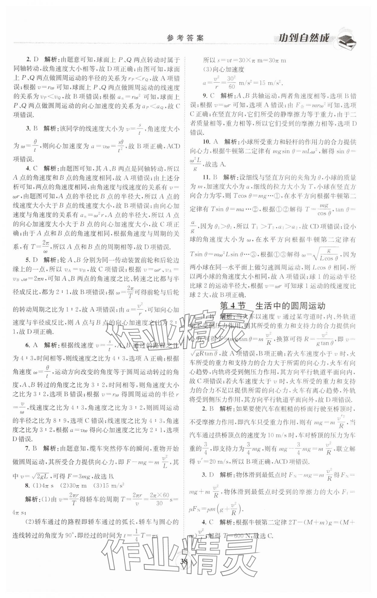 注:目前有些书本章节名称可能整理的还不是很完善,但都是按照顺序排列的,请同学们按照顺序仔细查找。练习册 2025年功到自然成高中物理必修第二册 答案主要是用来给同学们做完题方便对答案用的,请勿直接抄袭。