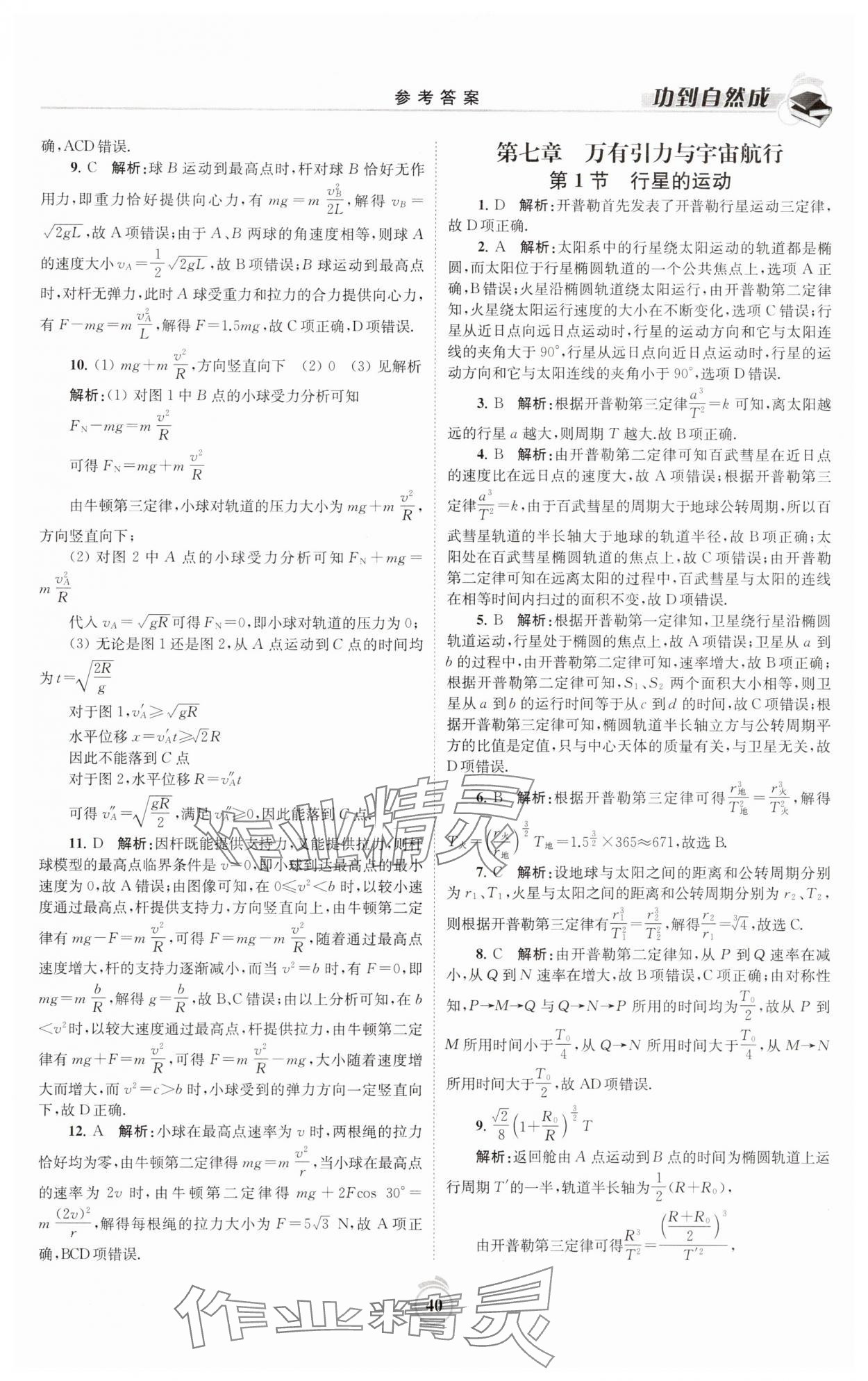 注:目前有些书本章节名称可能整理的还不是很完善,但都是按照顺序排列的,请同学们按照顺序仔细查找。练习册 2025年功到自然成高中物理必修第二册 答案主要是用来给同学们做完题方便对答案用的,请勿直接抄袭。