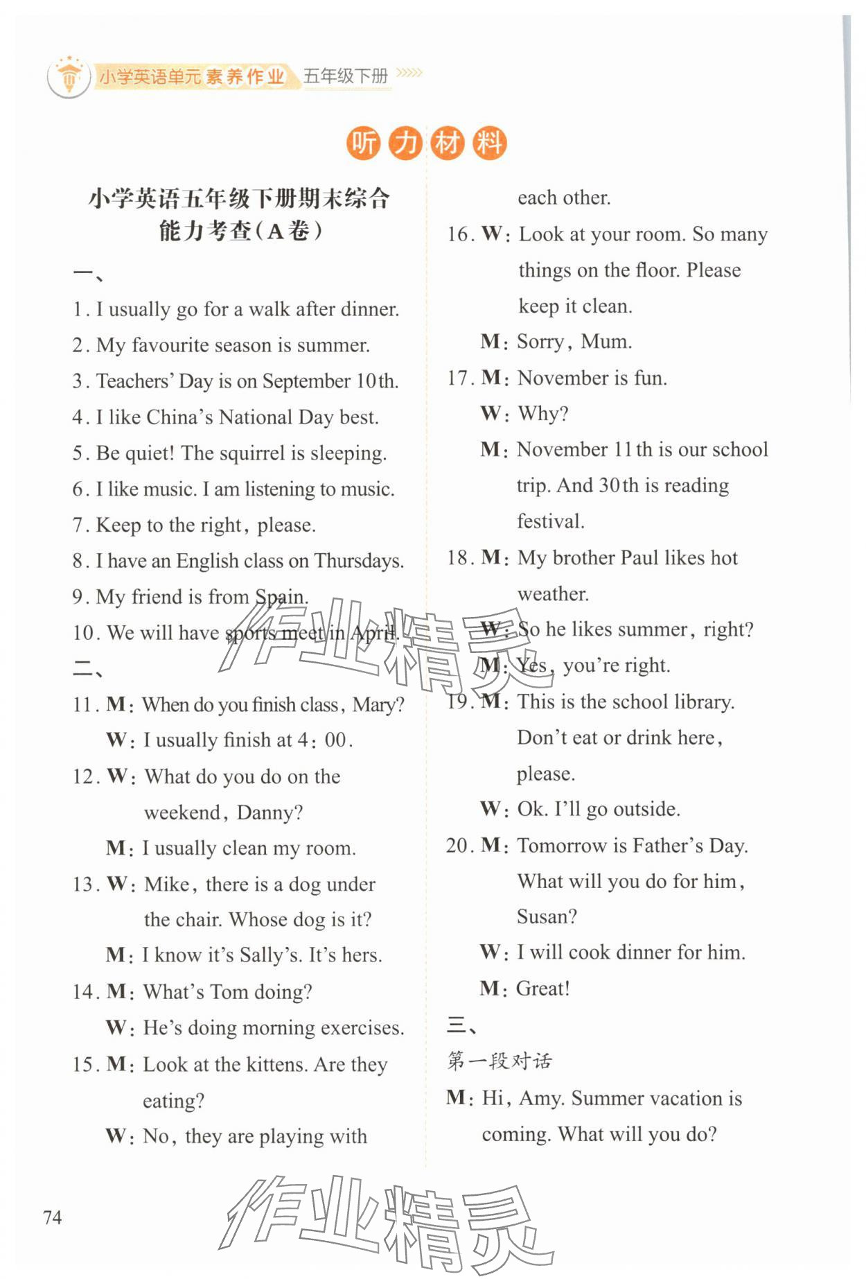 注:目前有些书本章节名称可能整理的还不是很完善,但都是按照顺序排列的,请同学们按照顺序仔细查找。练习册 2025年小学单元素养作业五年级英语下册人教版 答案主要是用来给同学们做完题方便对答案用的,请勿直接抄袭。