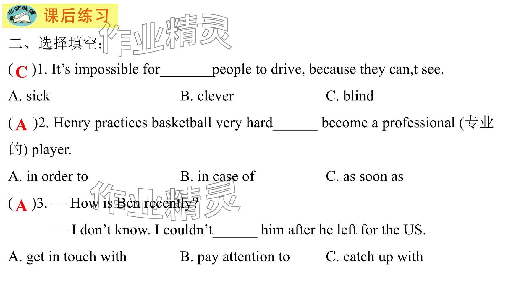 注:目前有些书本章节名称可能整理的还不是很完善,但都是按照顺序排列的,请同学们按照顺序仔细查找。练习册 2025年每课一练(福建)八年级英语下册仁爱版 答案主要是用来给同学们做完题方便对答案用的,请勿直接抄袭。