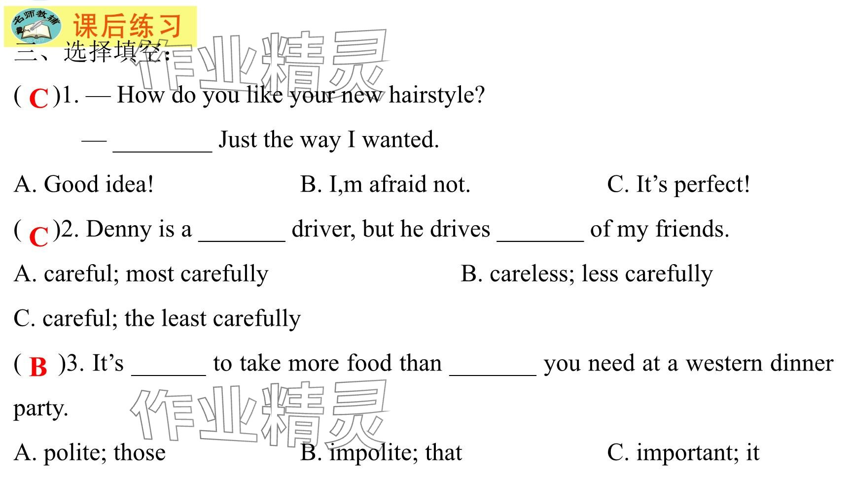 注:目前有些书本章节名称可能整理的还不是很完善,但都是按照顺序排列的,请同学们按照顺序仔细查找。练习册 2025年每课一练(福建)八年级英语下册仁爱版 答案主要是用来给同学们做完题方便对答案用的,请勿直接抄袭。