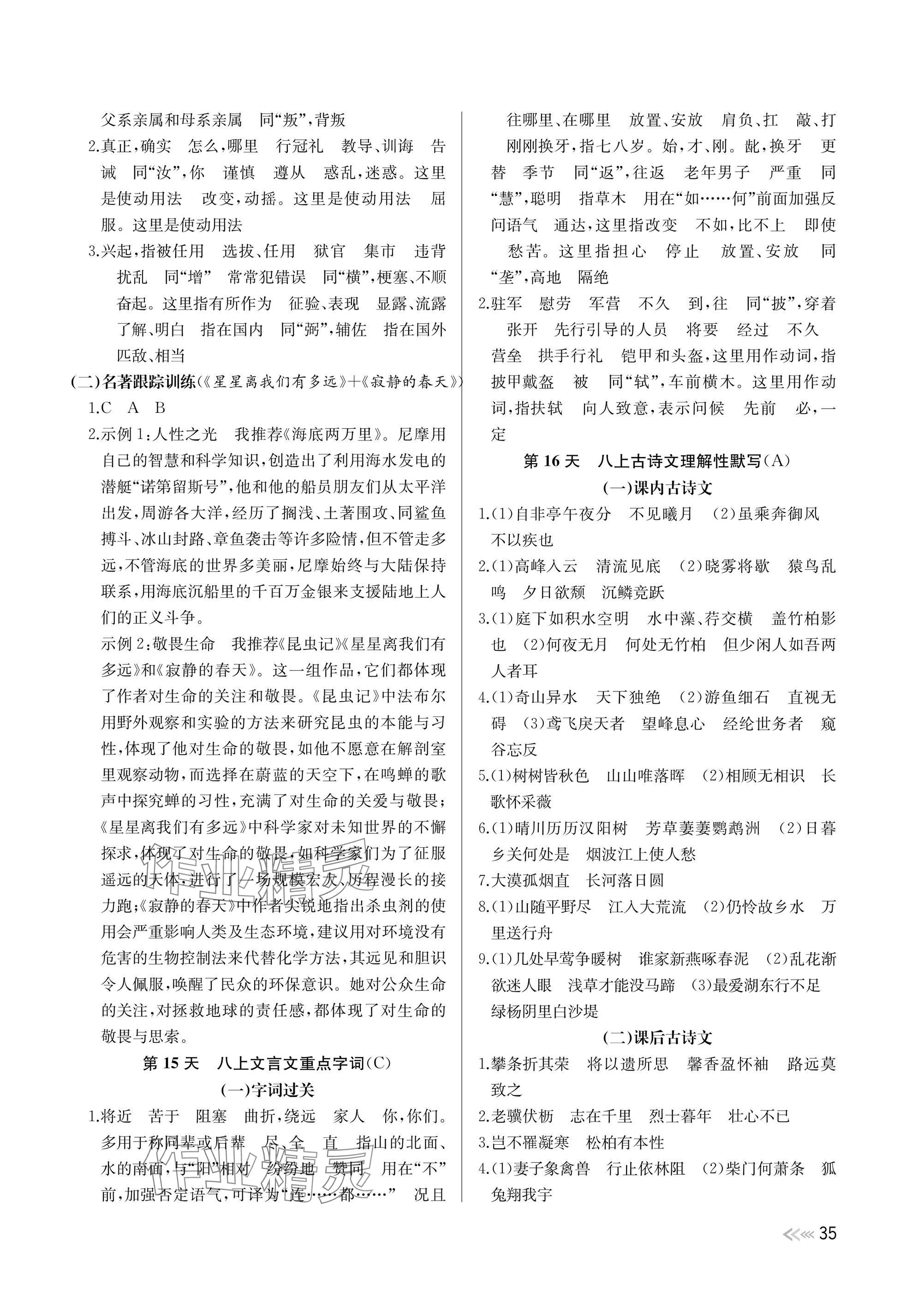 注:目前有些书本章节名称可能整理的还不是很完善,但都是按照顺序排列的,请同学们按照顺序仔细查找。练习册 2025年中考复习全景突破语文浙江专版 答案主要是用来给同学们做完题方便对答案用的,请勿直接抄袭。