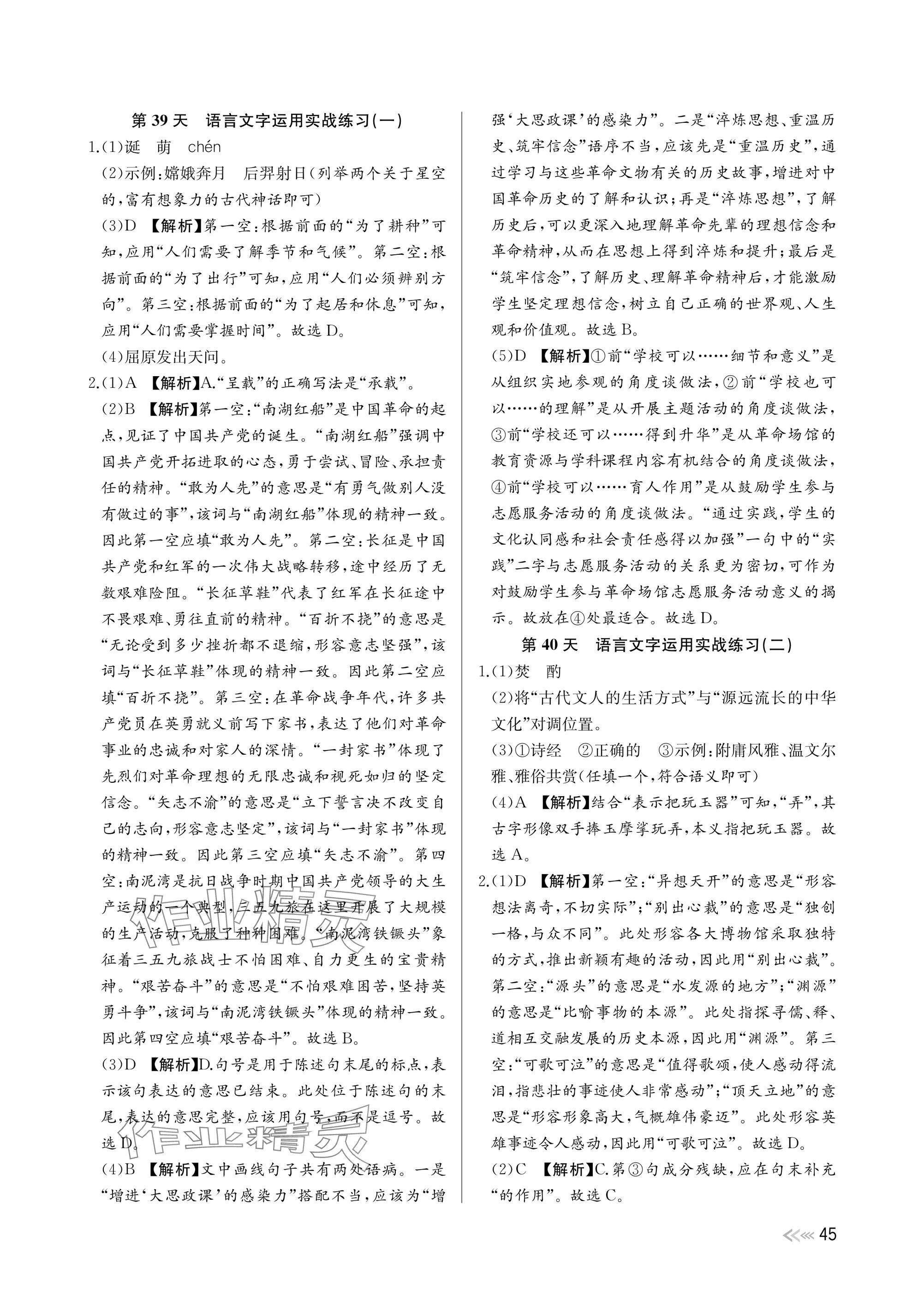 注:目前有些书本章节名称可能整理的还不是很完善,但都是按照顺序排列的,请同学们按照顺序仔细查找。练习册 2025年中考复习全景突破语文浙江专版 答案主要是用来给同学们做完题方便对答案用的,请勿直接抄袭。