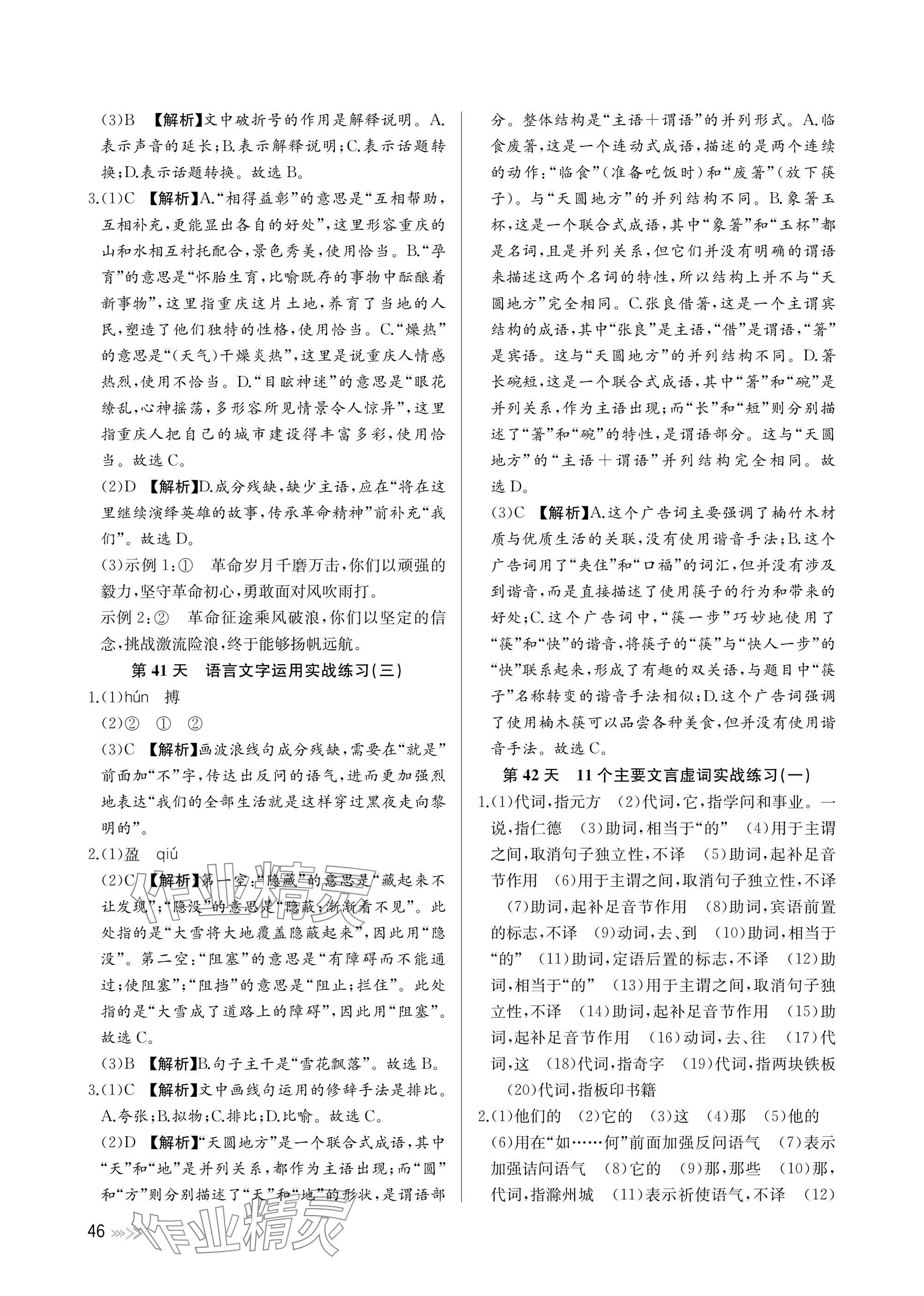 注:目前有些书本章节名称可能整理的还不是很完善,但都是按照顺序排列的,请同学们按照顺序仔细查找。练习册 2025年中考复习全景突破语文浙江专版 答案主要是用来给同学们做完题方便对答案用的,请勿直接抄袭。