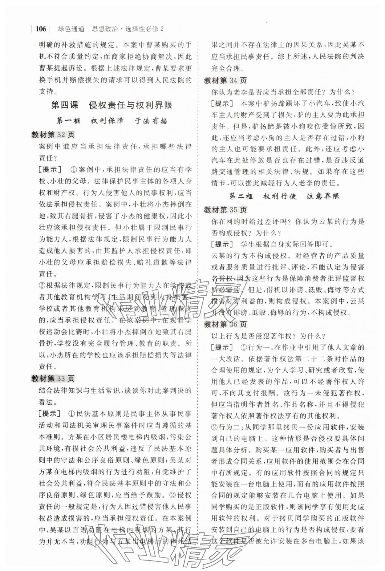 注:目前有些书本章节名称可能整理的还不是很完善,但都是按照顺序排列的,请同学们按照顺序仔细查找。练习册 2024年教材课本高中道德与法治选择性必修第二册人教版 答案主要是用来给同学们做完题方便对答案用的,请勿直接抄袭。