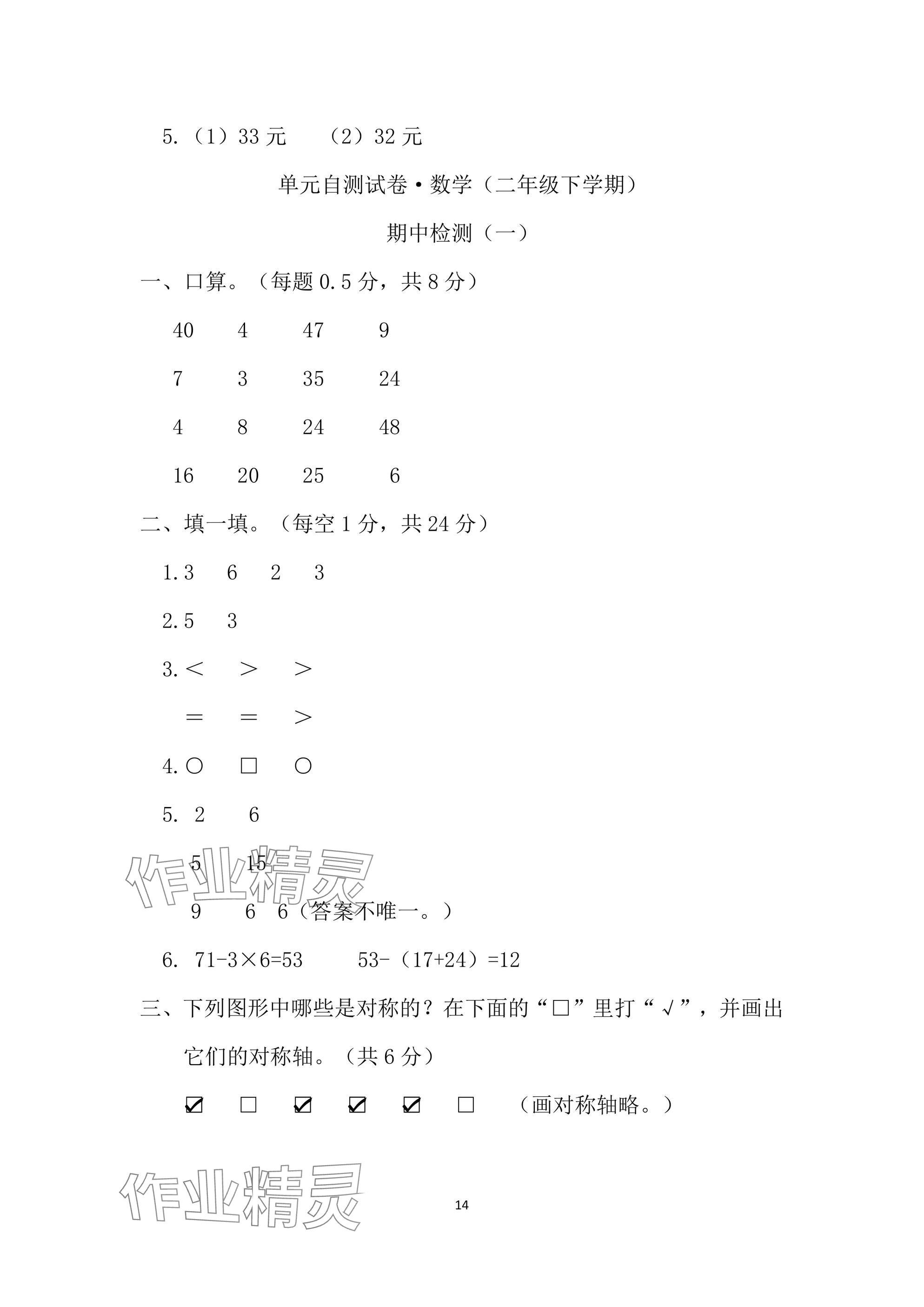 注:目前有些书本章节名称可能整理的还不是很完善,但都是按照顺序排列的,请同学们按照顺序仔细查找。练习册 2025年单元自测试卷二年级数学下学期人教版 答案主要是用来给同学们做完题方便对答案用的,请勿直接抄袭。