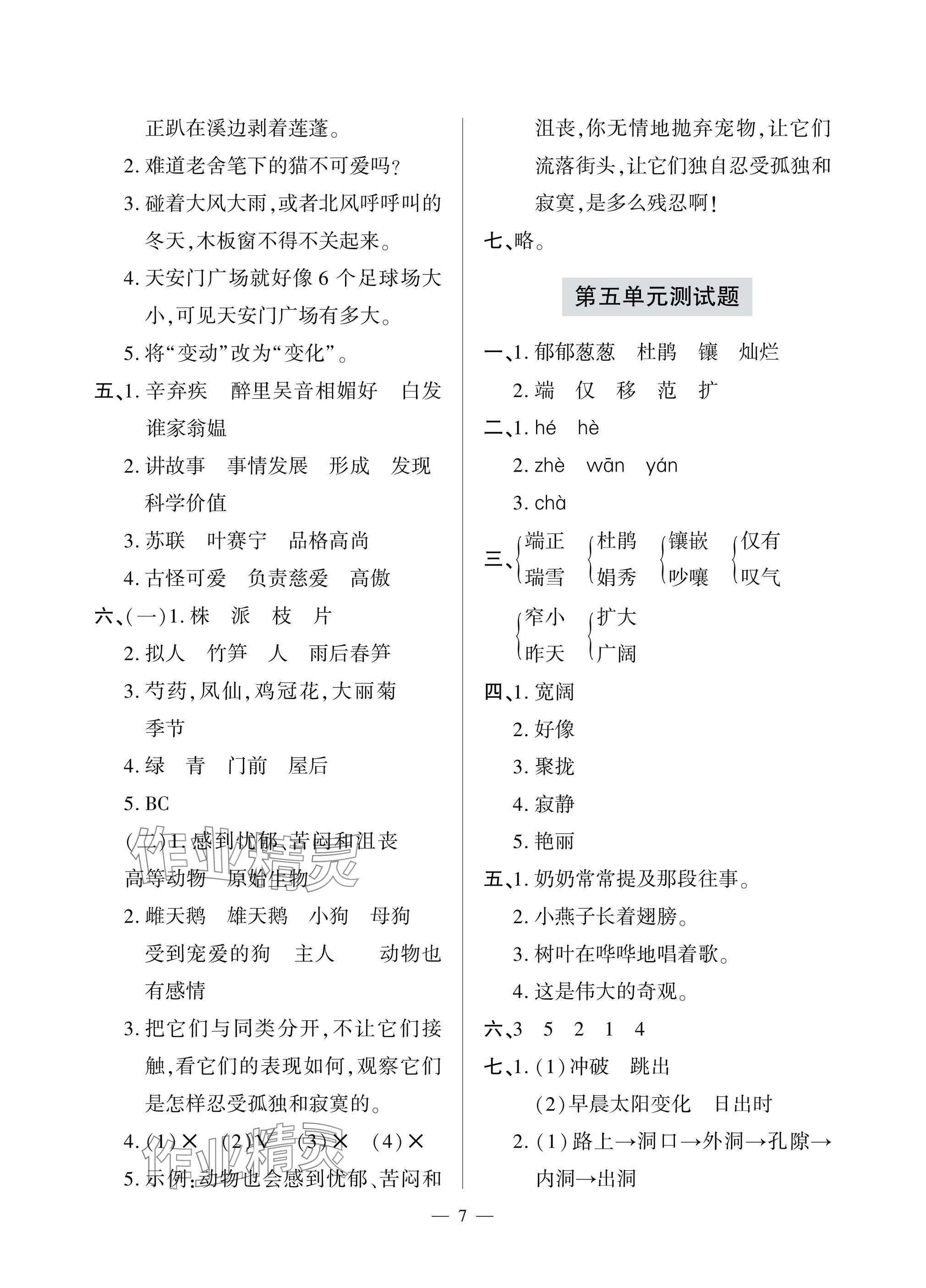 注:目前有些书本章节名称可能整理的还不是很完善,但都是按照顺序排列的,请同学们按照顺序仔细查找。练习册 2025年单元自测试卷青岛出版社四年级语文下册人教版 答案主要是用来给同学们做完题方便对答案用的,请勿直接抄袭。