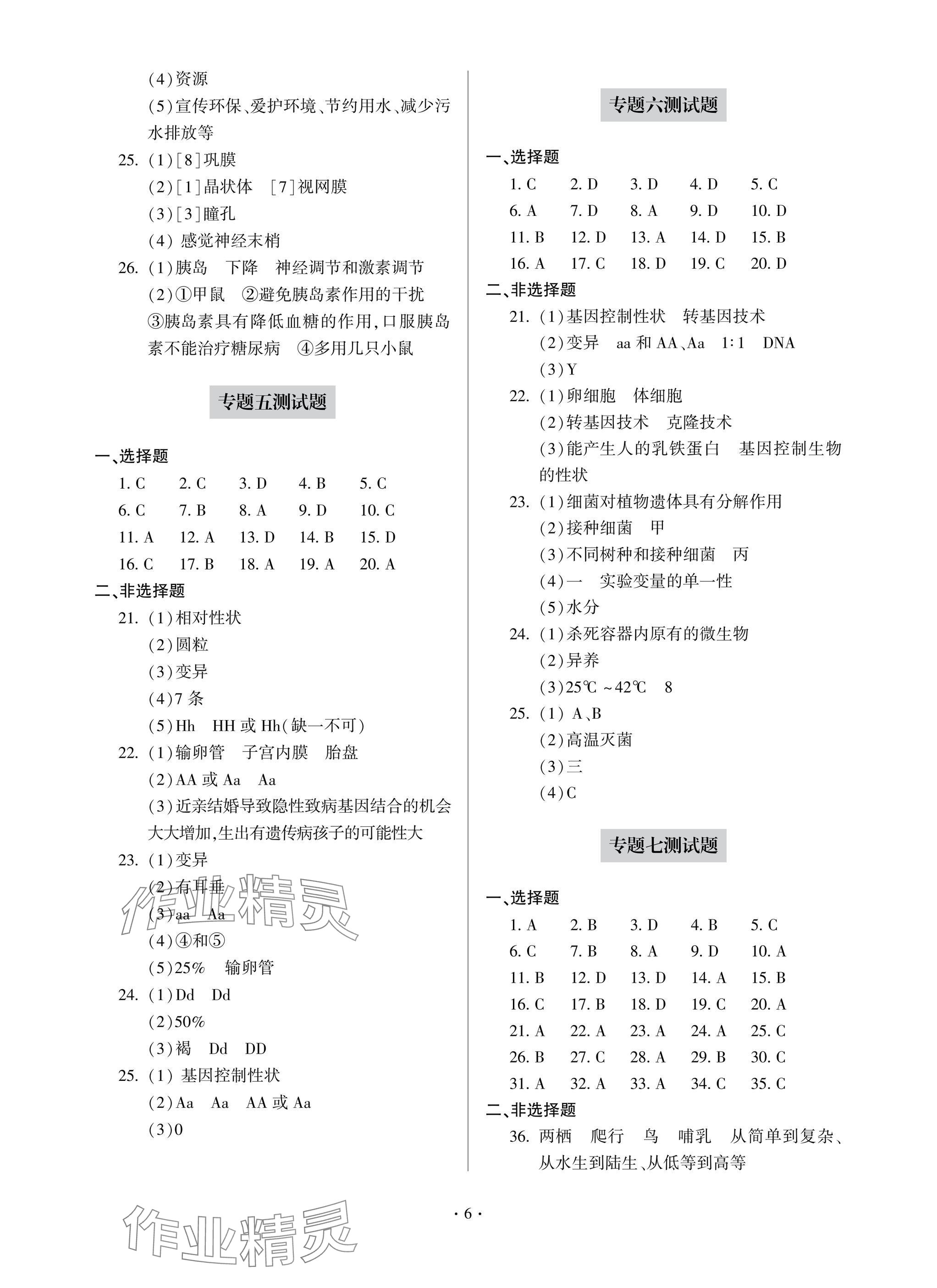 注:目前有些书本章节名称可能整理的还不是很完善,但都是按照顺序排列的,请同学们按照顺序仔细查找。练习册 2025年单元自测试卷青岛出版社八年级生物下册人教版 答案主要是用来给同学们做完题方便对答案用的,请勿直接抄袭。