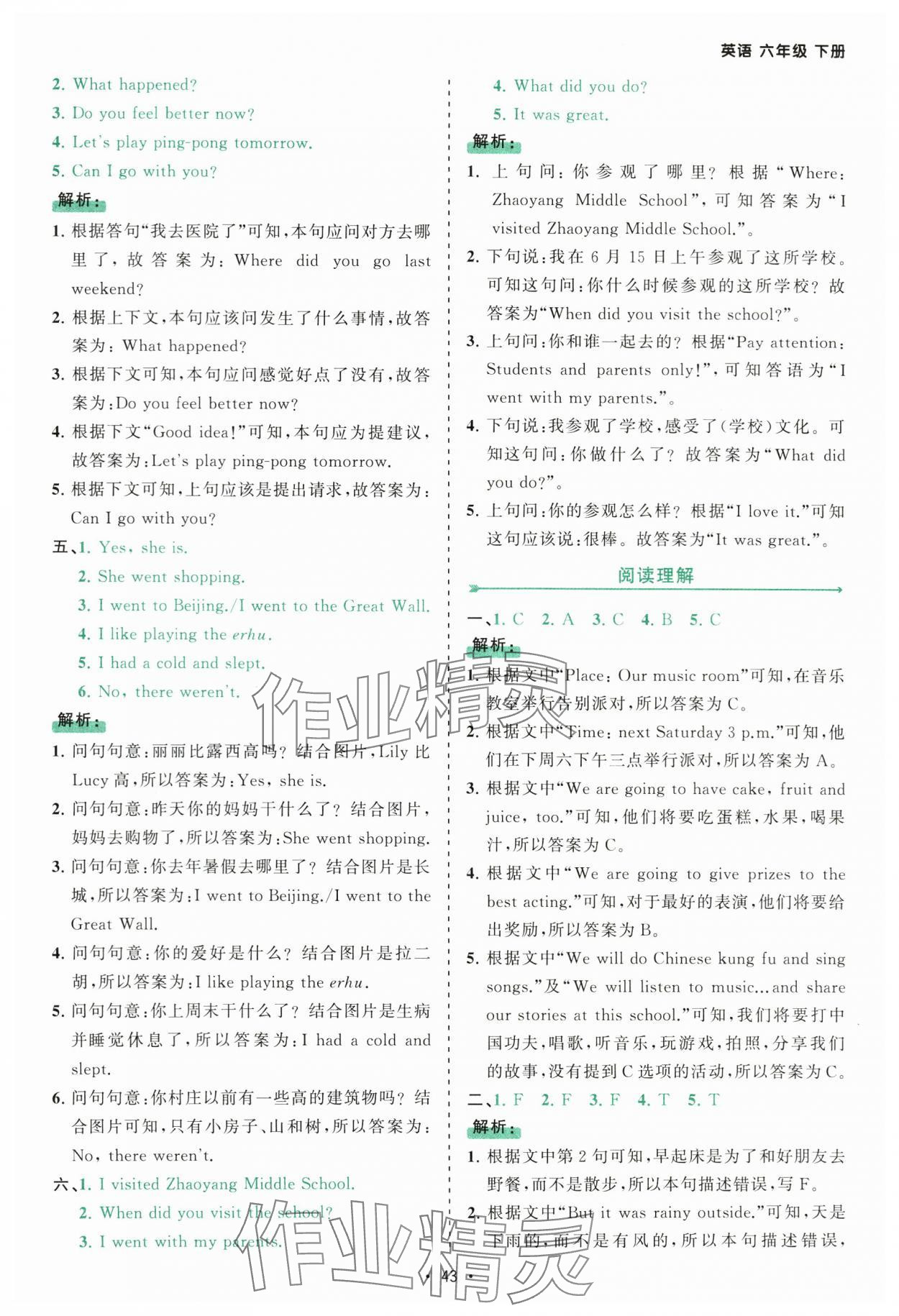 注:目前有些书本章节名称可能整理的还不是很完善,但都是按照顺序排列的,请同学们按照顺序仔细查找。练习册 2025年课时一本通六年级英语下册人教版佛山专版 答案主要是用来给同学们做完题方便对答案用的,请勿直接抄袭。