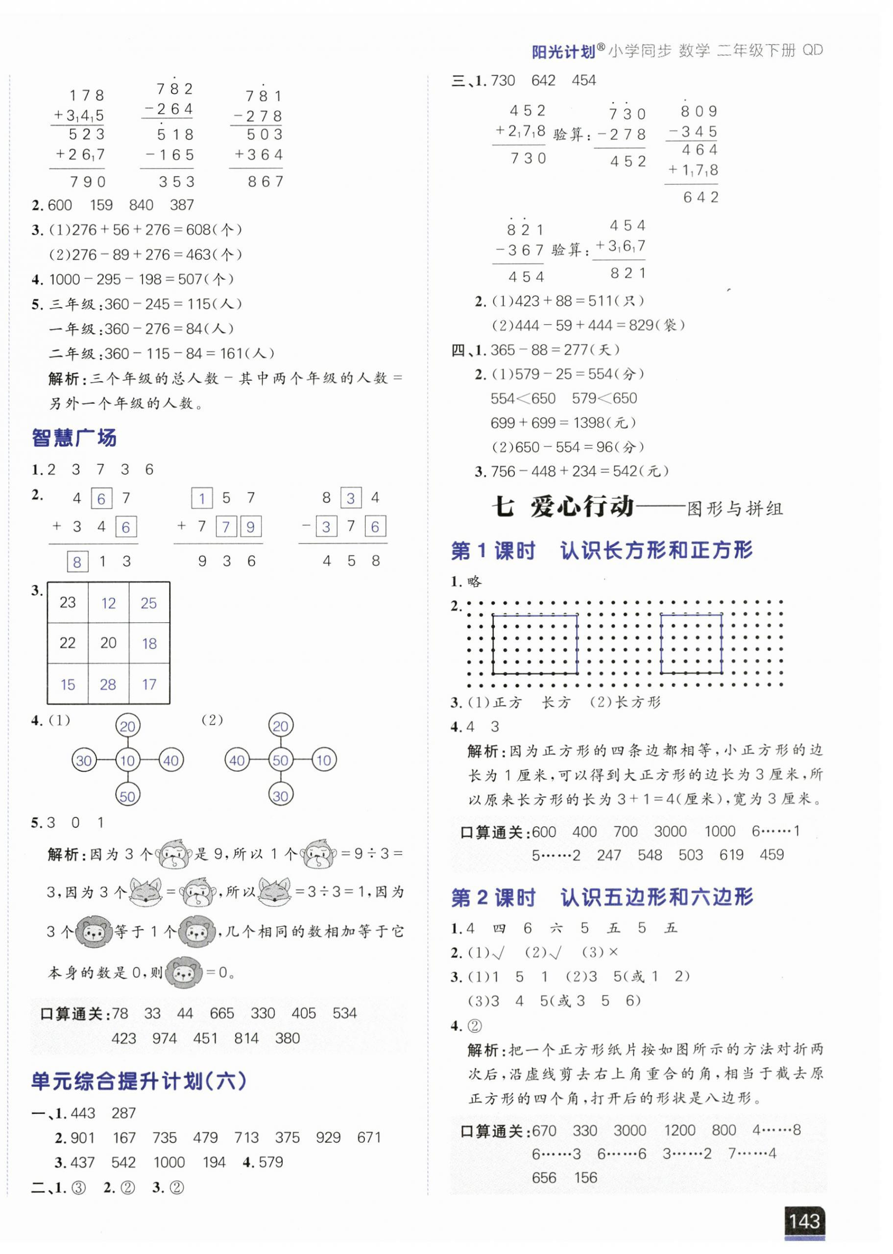 注:目前有些书本章节名称可能整理的还不是很完善,但都是按照顺序排列的,请同学们按照顺序仔细查找。练习册 2025年阳光计划小学同步二年级数学下册青岛版 答案主要是用来给同学们做完题方便对答案用的,请勿直接抄袭。