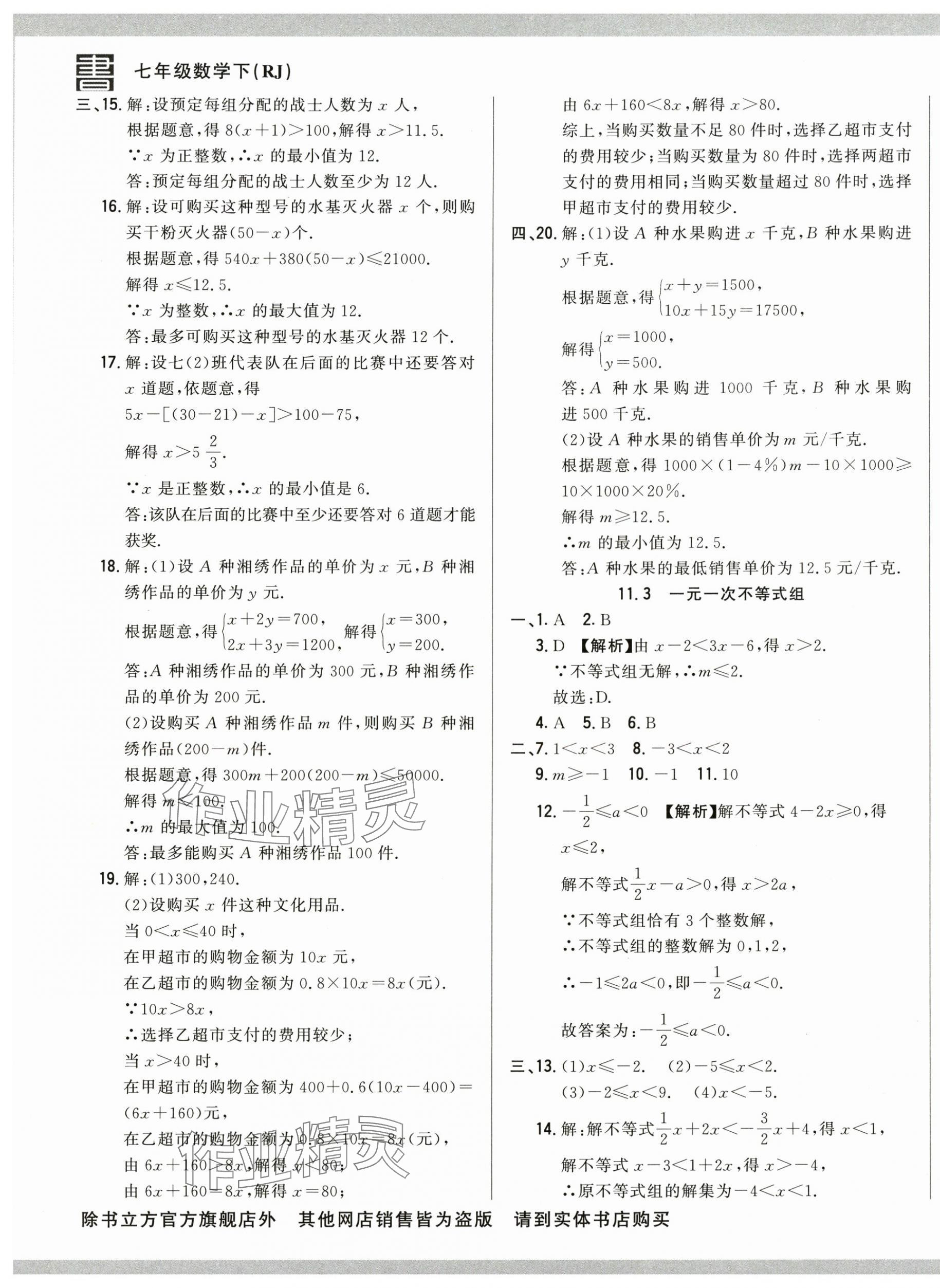 注:目前有些书本章节名称可能整理的还不是很完善,但都是按照顺序排列的,请同学们按照顺序仔细查找。练习册 2025年名校调研跟踪测试卷七年级数学下册人教版 答案主要是用来给同学们做完题方便对答案用的,请勿直接抄袭。
