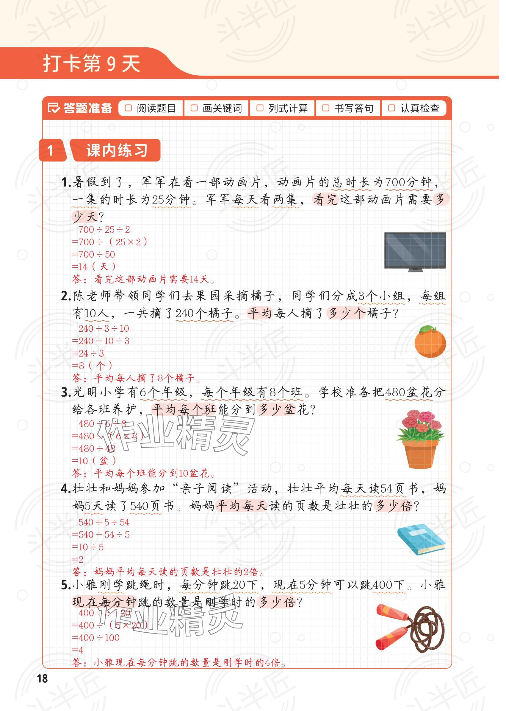 注:目前有些书本章节名称可能整理的还不是很完善,但都是按照顺序排列的,请同学们按照顺序仔细查找。练习册 2025年每天10道应用题强化训练四年级数学下册人教版 答案主要是用来给同学们做完题方便对答案用的,请勿直接抄袭。