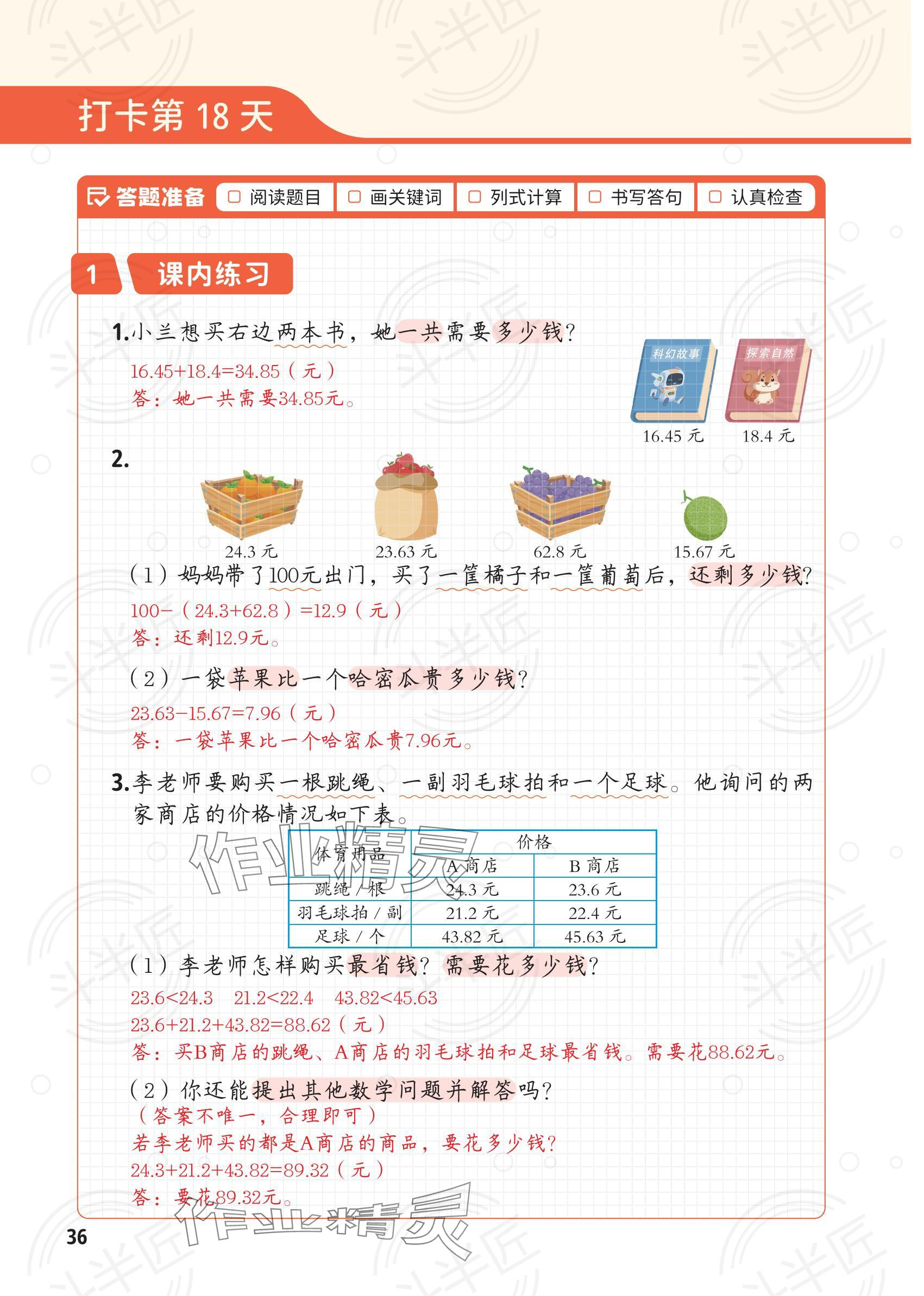 注:目前有些书本章节名称可能整理的还不是很完善,但都是按照顺序排列的,请同学们按照顺序仔细查找。练习册 2025年每天10道应用题强化训练四年级数学下册人教版 答案主要是用来给同学们做完题方便对答案用的,请勿直接抄袭。
