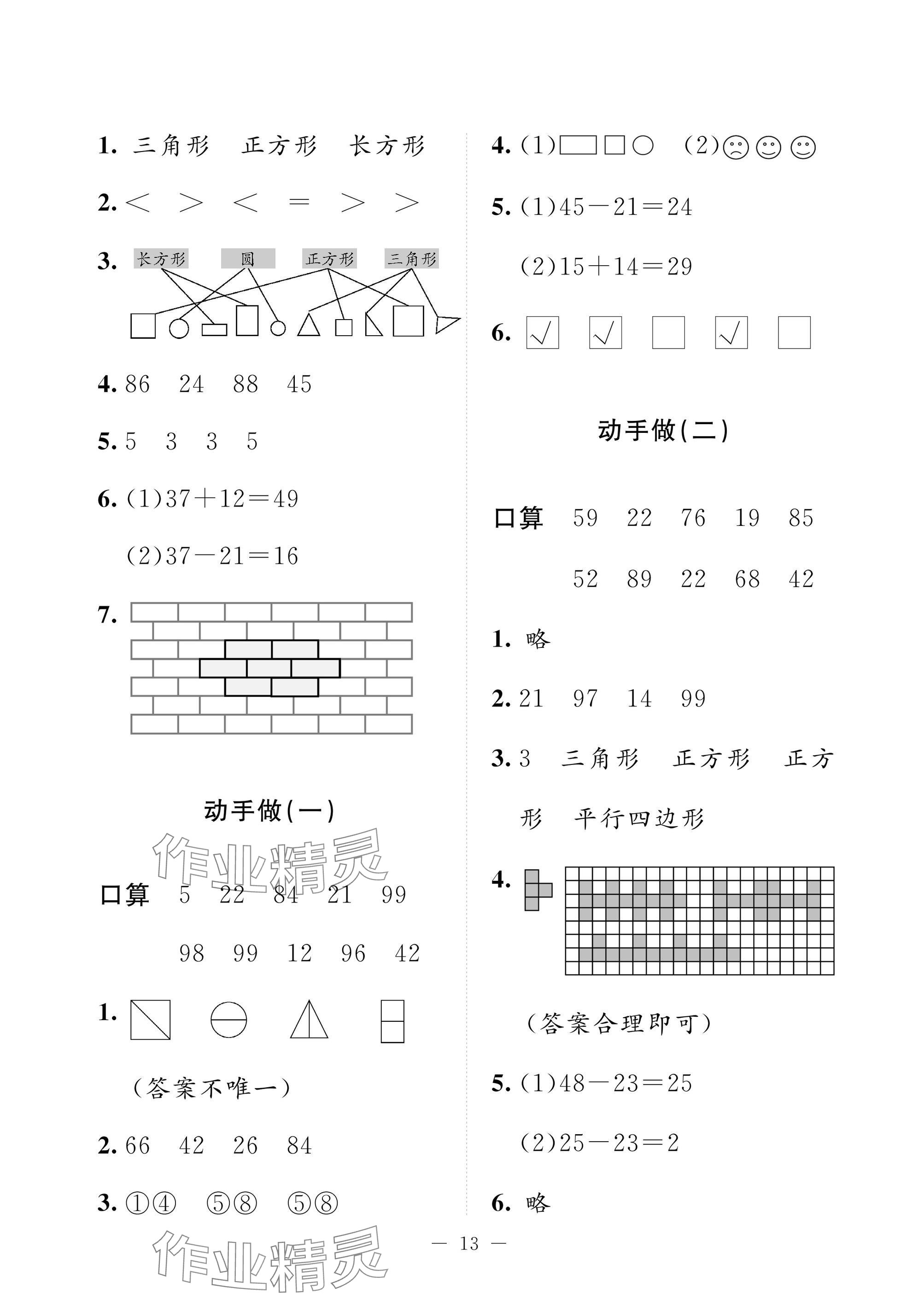 注:目前有些书本章节名称可能整理的还不是很完善,但都是按照顺序排列的,请同学们按照顺序仔细查找。练习册 2025年配套练习与检测一年级数学下册北师大版 答案主要是用来给同学们做完题方便对答案用的,请勿直接抄袭。