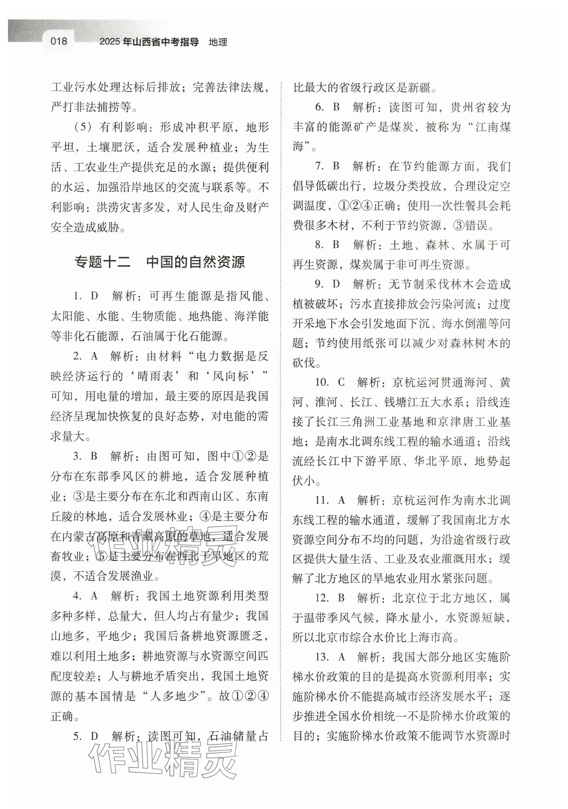 注:目前有些书本章节名称可能整理的还不是很完善,但都是按照顺序排列的,请同学们按照顺序仔细查找。练习册 2025年山西省中考指导地理 答案主要是用来给同学们做完题方便对答案用的,请勿直接抄袭。
