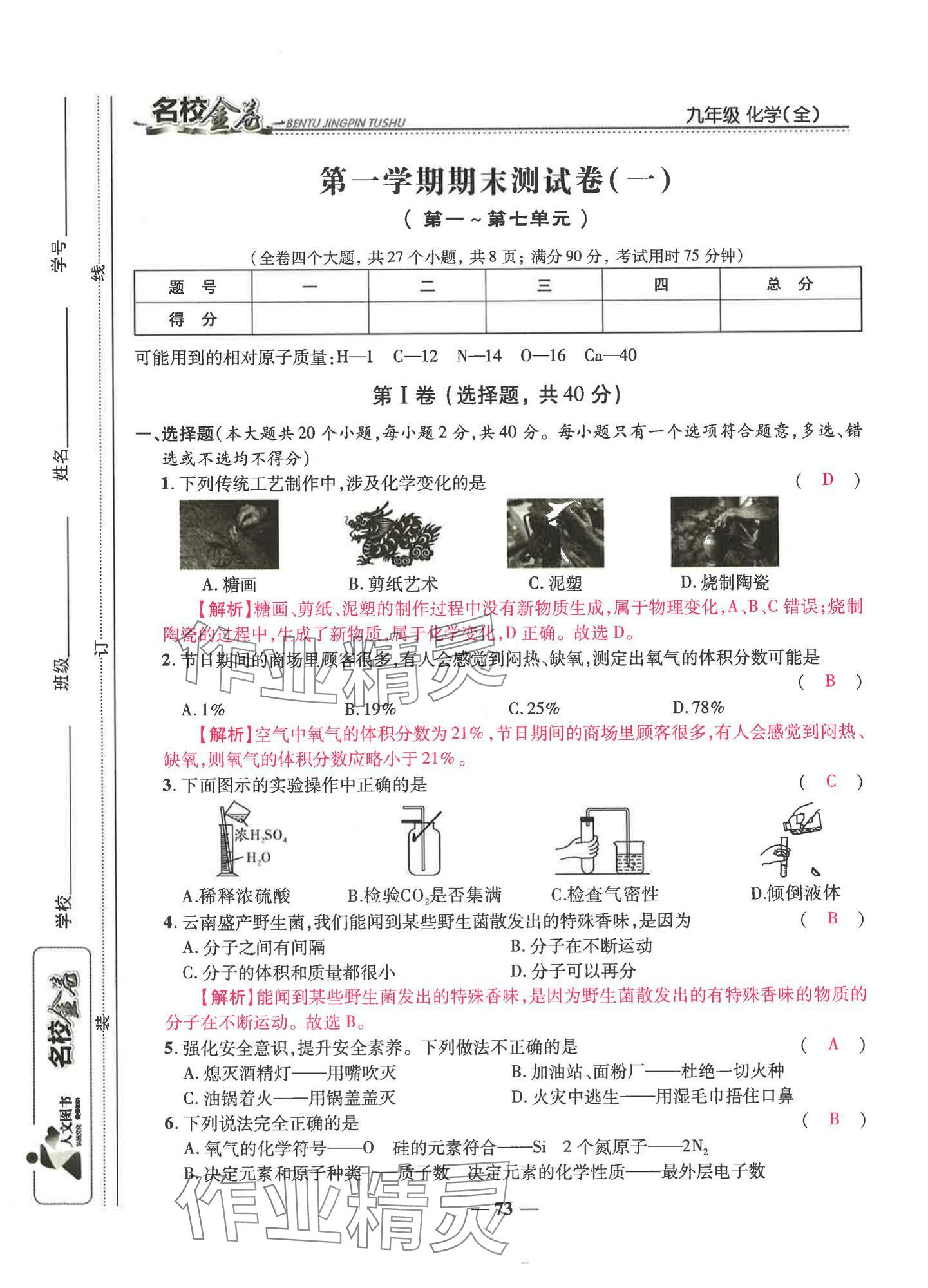 注:目前有些书本章节名称可能整理的还不是很完善,但都是按照顺序排列的,请同学们按照顺序仔细查找。练习册 2024年云南本土名校金卷九年级化学全一册人教版 答案主要是用来给同学们做完题方便对答案用的,请勿直接抄袭。