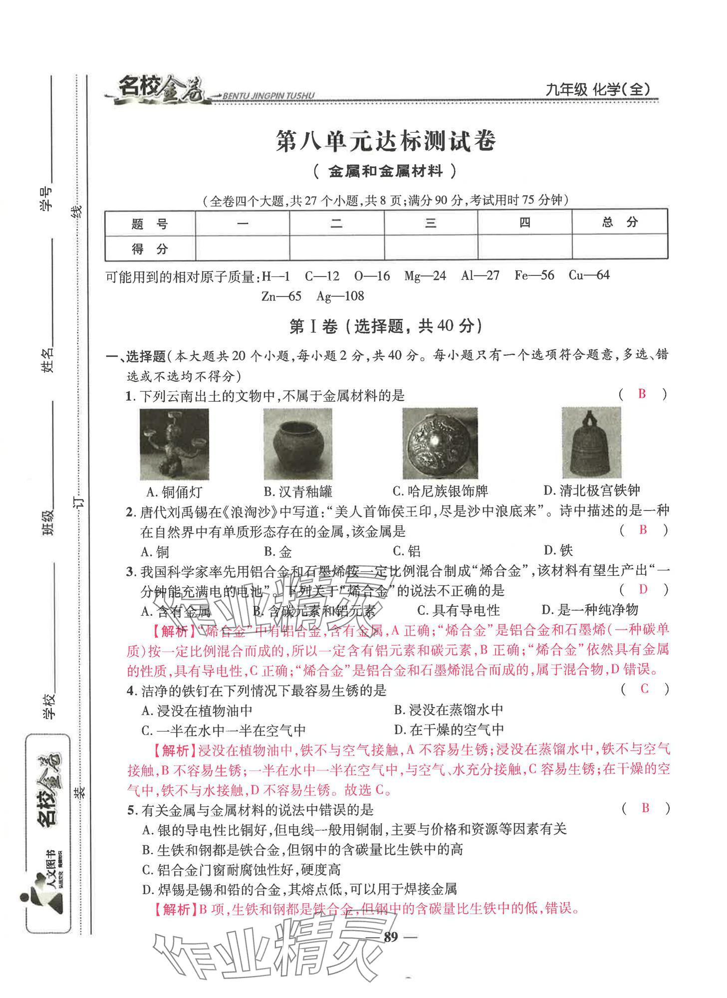注:目前有些书本章节名称可能整理的还不是很完善,但都是按照顺序排列的,请同学们按照顺序仔细查找。练习册 2024年云南本土名校金卷九年级化学全一册人教版 答案主要是用来给同学们做完题方便对答案用的,请勿直接抄袭。