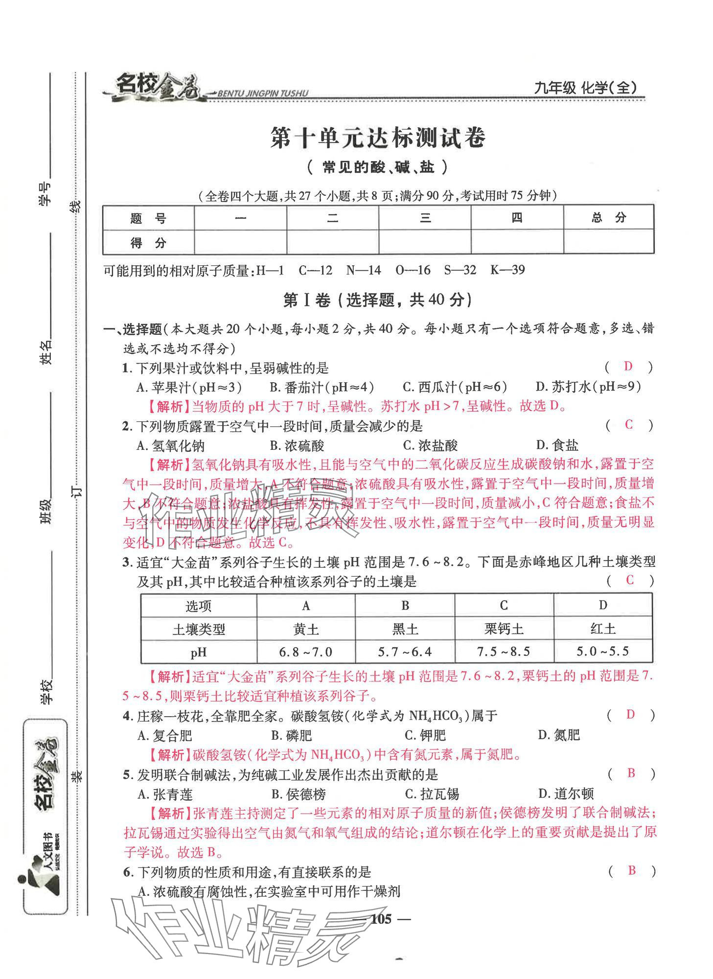注:目前有些书本章节名称可能整理的还不是很完善,但都是按照顺序排列的,请同学们按照顺序仔细查找。练习册 2024年云南本土名校金卷九年级化学全一册人教版 答案主要是用来给同学们做完题方便对答案用的,请勿直接抄袭。