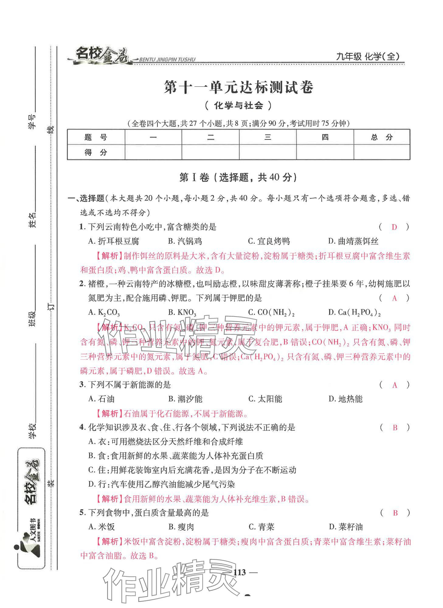 注:目前有些书本章节名称可能整理的还不是很完善,但都是按照顺序排列的,请同学们按照顺序仔细查找。练习册 2024年云南本土名校金卷九年级化学全一册人教版 答案主要是用来给同学们做完题方便对答案用的,请勿直接抄袭。