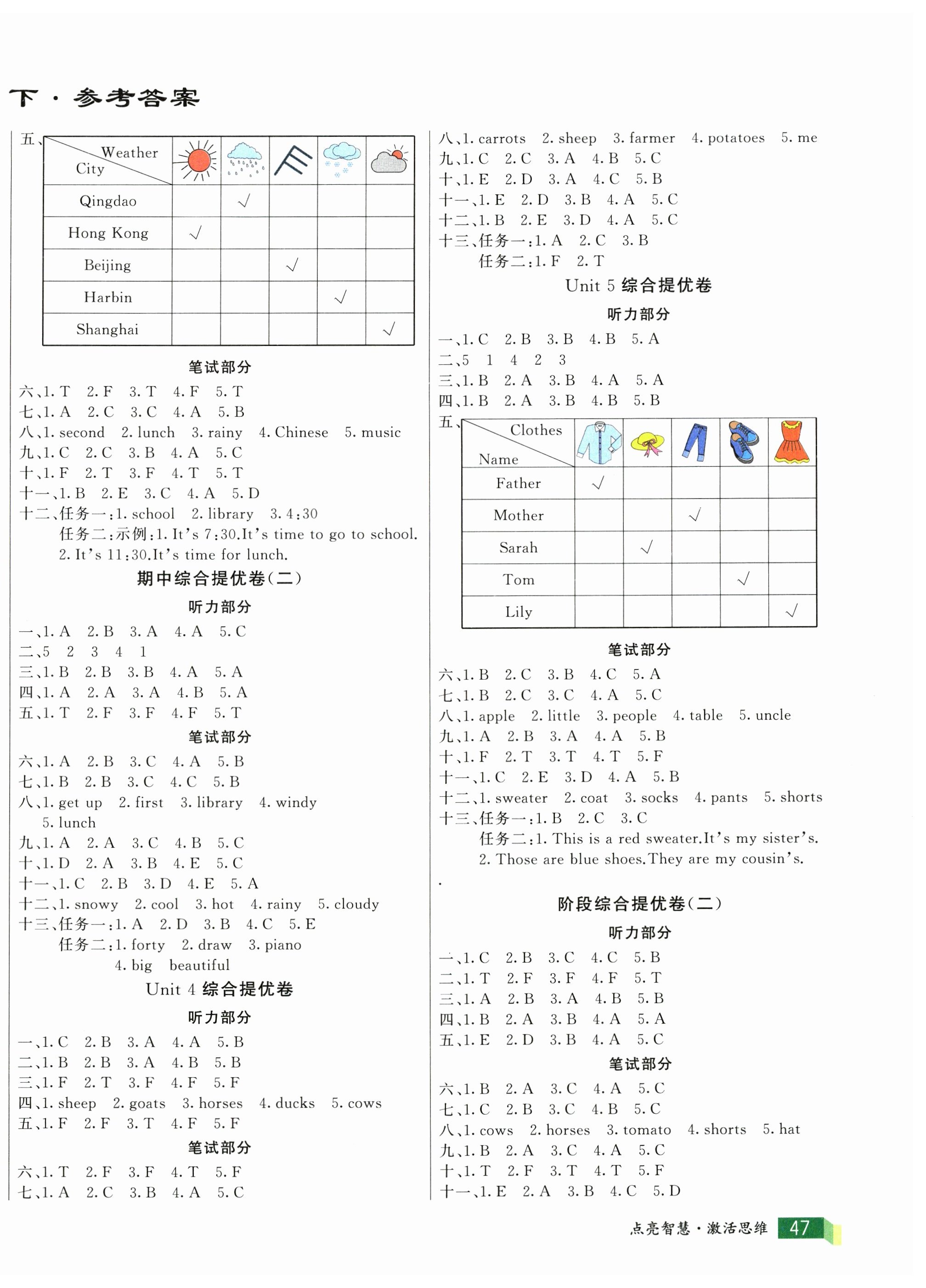 注:目前有些书本章节名称可能整理的还不是很完善,但都是按照顺序排列的,请同学们按照顺序仔细查找。练习册 2025年亮点激活提优大试卷四年级英语下册人教版 答案主要是用来给同学们做完题方便对答案用的,请勿直接抄袭。