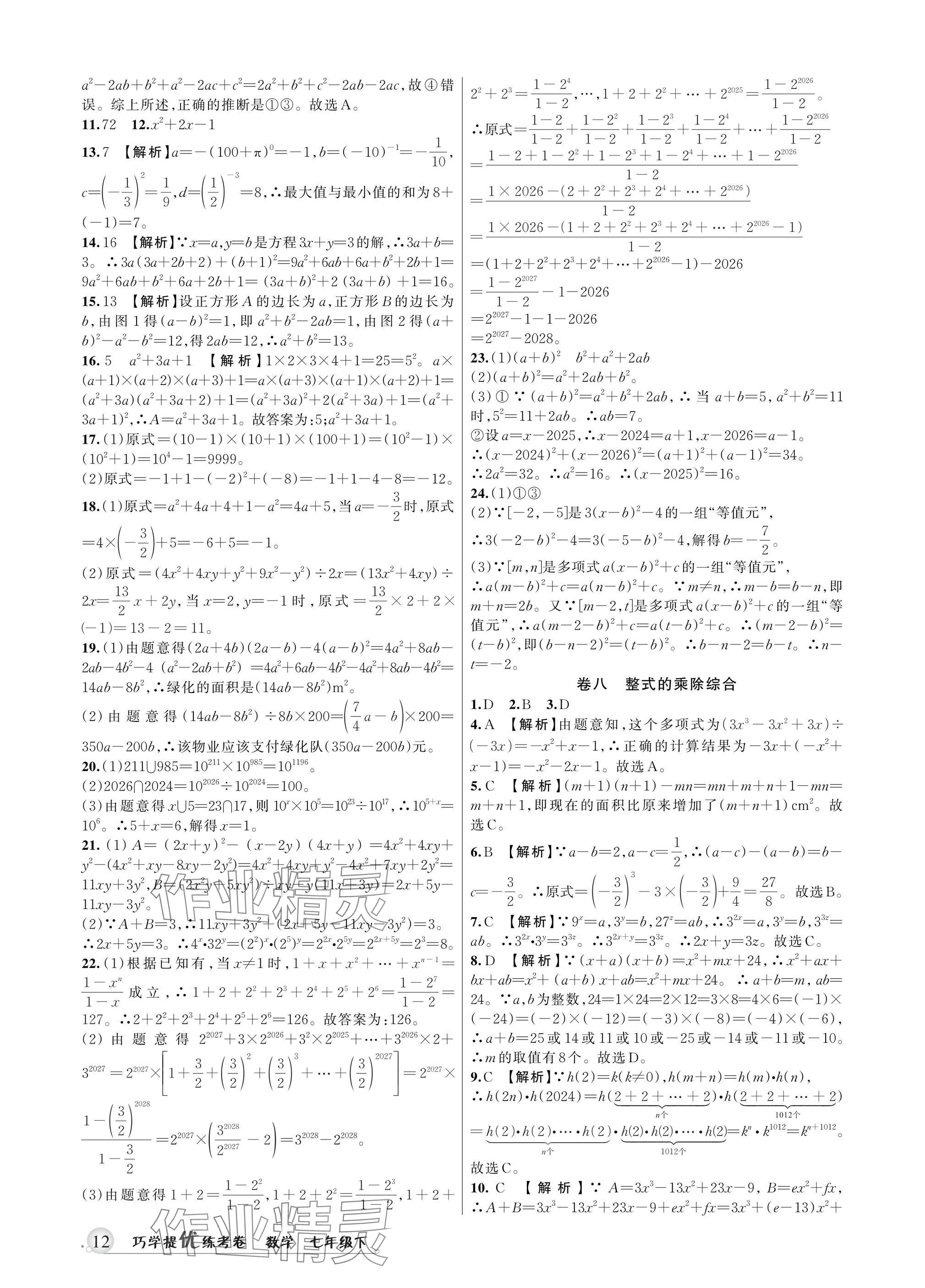 注:目前有些书本章节名称可能整理的还不是很完善,但都是按照顺序排列的,请同学们按照顺序仔细查找。练习册 2025年巧学提优七年级数学下册浙教版 答案主要是用来给同学们做完题方便对答案用的,请勿直接抄袭。