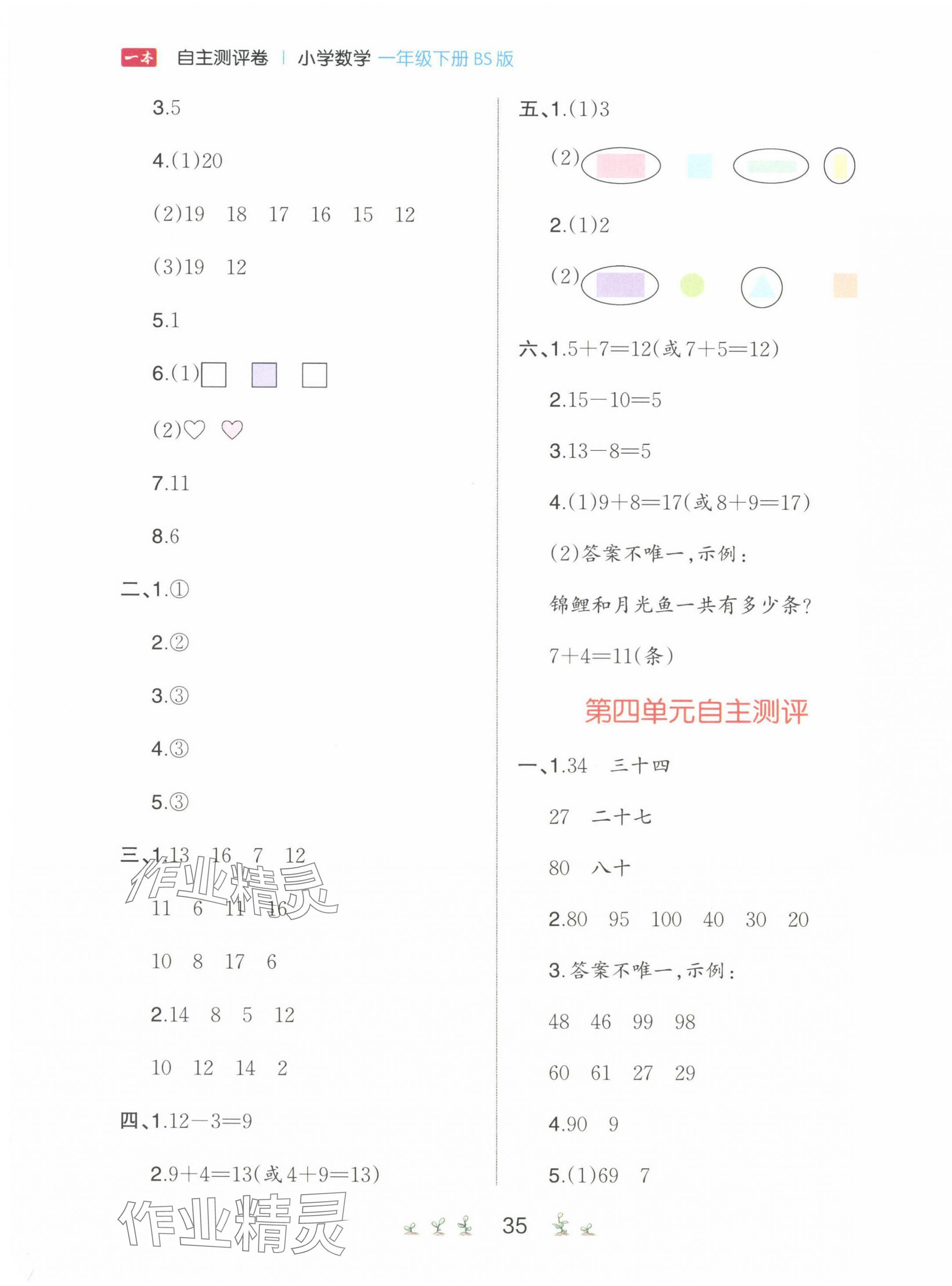 注:目前有些书本章节名称可能整理的还不是很完善,但都是按照顺序排列的,请同学们按照顺序仔细查找。练习册 2025年一本同步训练一年级数学下册北师大版 答案主要是用来给同学们做完题方便对答案用的,请勿直接抄袭。