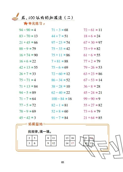 注:目前有些书本章节名称可能整理的还不是很完善,但都是按照顺序排列的,请同学们按照顺序仔细查找。练习册 2025年口算天天练青岛出版社一年级数学下册青岛版 答案主要是用来给同学们做完题方便对答案用的,请勿直接抄袭。