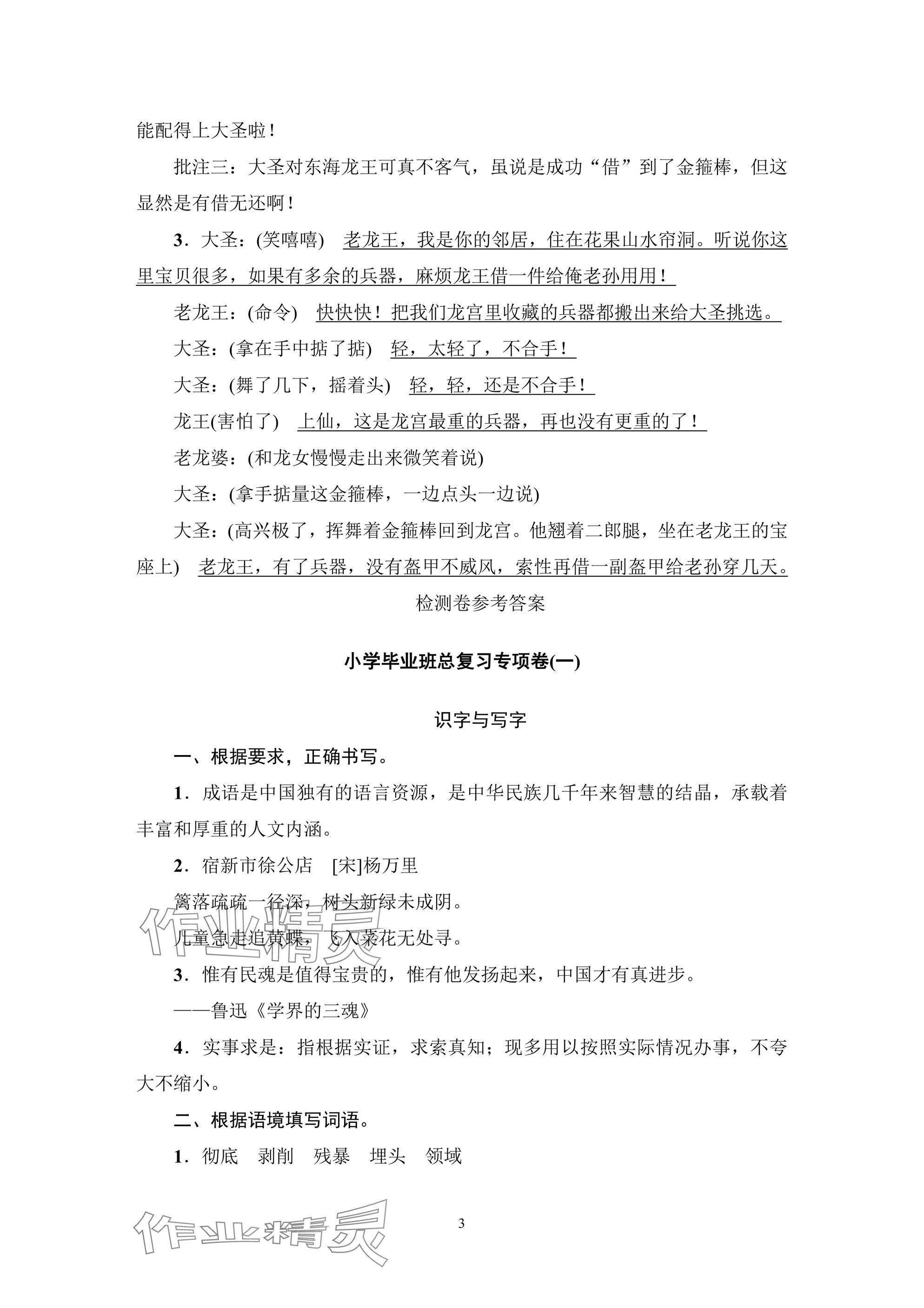 注:目前有些书本章节名称可能整理的还不是很完善,但都是按照顺序排列的,请同学们按照顺序仔细查找。练习册 2025年小学毕业班总复习语文 答案主要是用来给同学们做完题方便对答案用的,请勿直接抄袭。