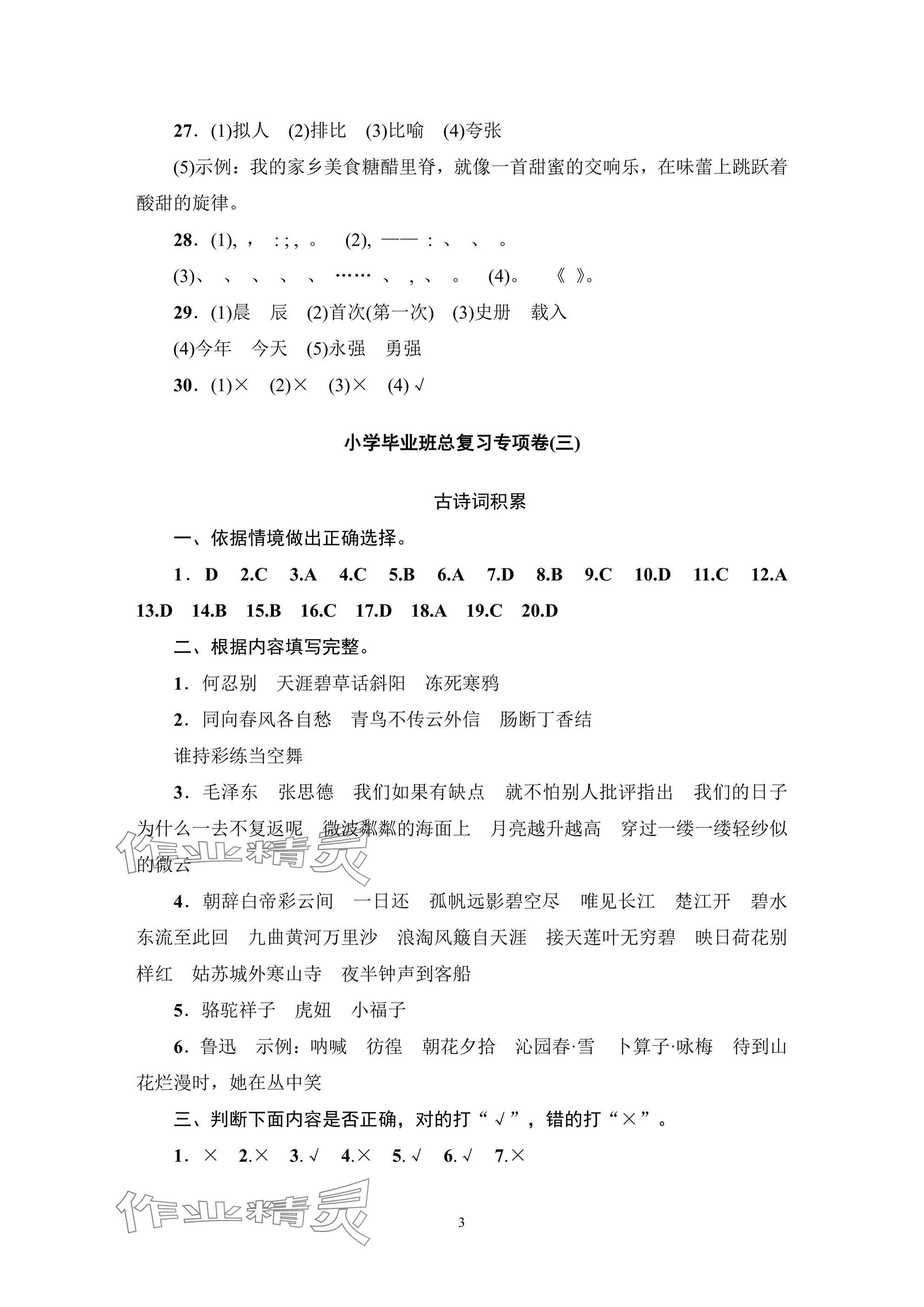 注:目前有些书本章节名称可能整理的还不是很完善,但都是按照顺序排列的,请同学们按照顺序仔细查找。练习册 2025年小学毕业班总复习语文 答案主要是用来给同学们做完题方便对答案用的,请勿直接抄袭。
