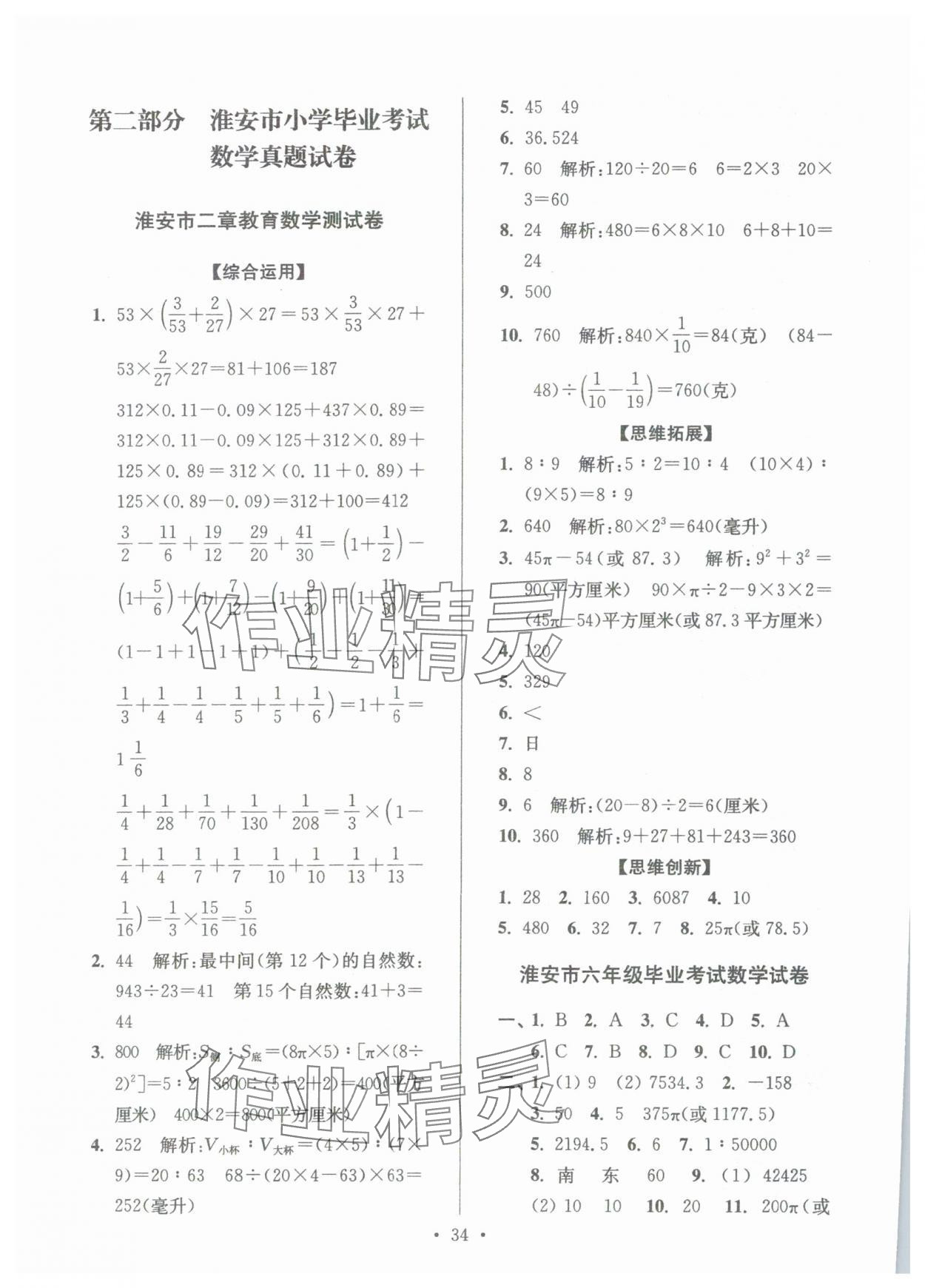 注:目前有些书本章节名称可能整理的还不是很完善,但都是按照顺序排列的,请同学们按照顺序仔细查找。练习册 2025年自主创新作业小学毕业总复习一本通数学淮安专版 答案主要是用来给同学们做完题方便对答案用的,请勿直接抄袭。