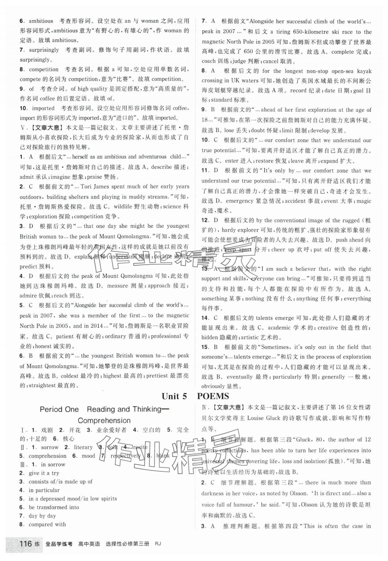 注:目前有些书本章节名称可能整理的还不是很完善,但都是按照顺序排列的,请同学们按照顺序仔细查找。练习册 2025年全品学练考高中英语选择性必修第三册人教版 答案主要是用来给同学们做完题方便对答案用的,请勿直接抄袭。