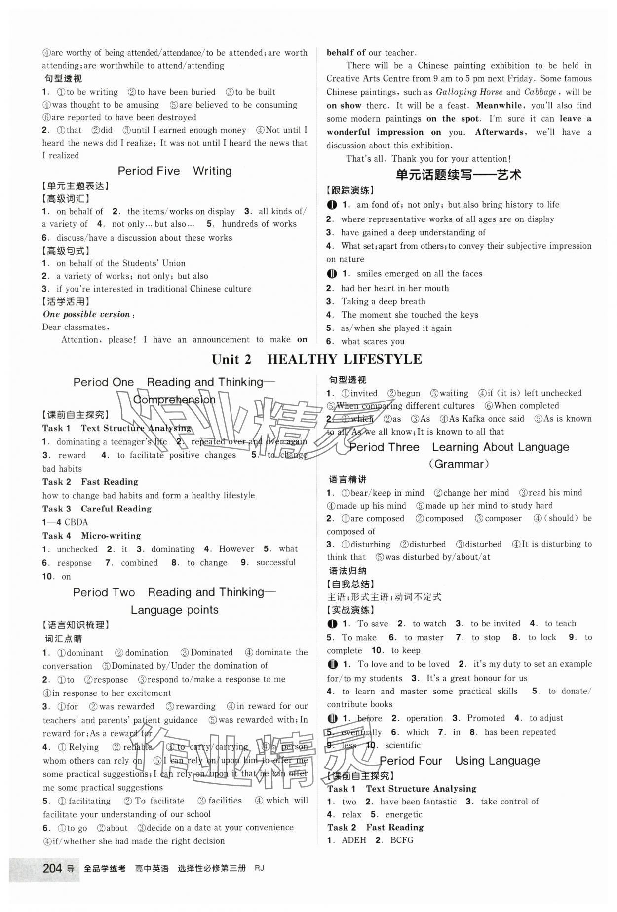 注:目前有些书本章节名称可能整理的还不是很完善,但都是按照顺序排列的,请同学们按照顺序仔细查找。练习册 2025年全品学练考高中英语选择性必修第三册人教版 答案主要是用来给同学们做完题方便对答案用的,请勿直接抄袭。