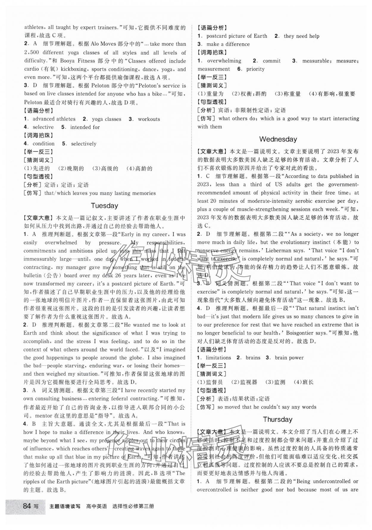 注:目前有些书本章节名称可能整理的还不是很完善,但都是按照顺序排列的,请同学们按照顺序仔细查找。练习册 2025年全品学练考高中英语选择性必修第三册人教版 答案主要是用来给同学们做完题方便对答案用的,请勿直接抄袭。