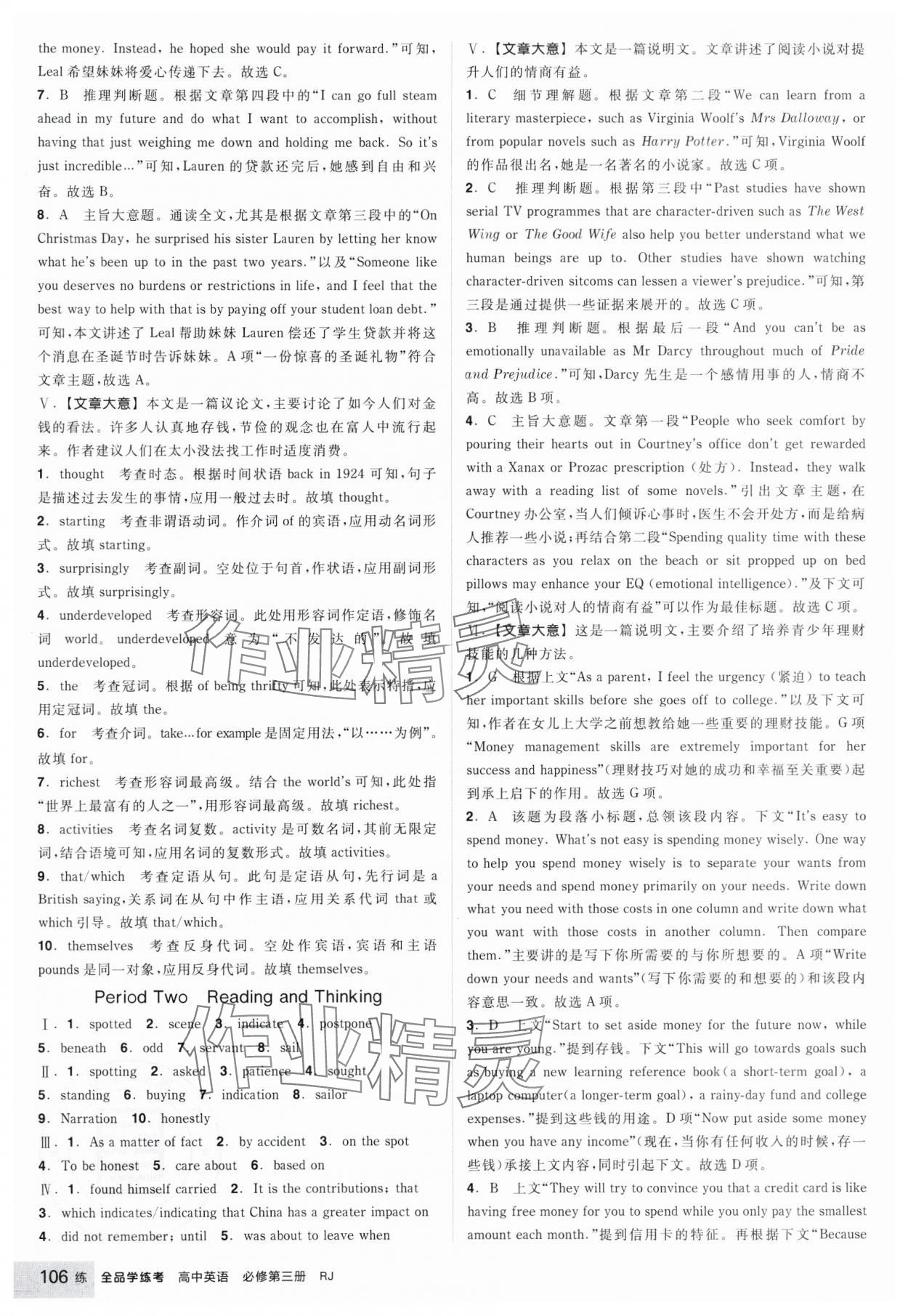 注:目前有些书本章节名称可能整理的还不是很完善,但都是按照顺序排列的,请同学们按照顺序仔细查找。练习册 2025年全品学练考高中英语必修第三册人教版 答案主要是用来给同学们做完题方便对答案用的,请勿直接抄袭。