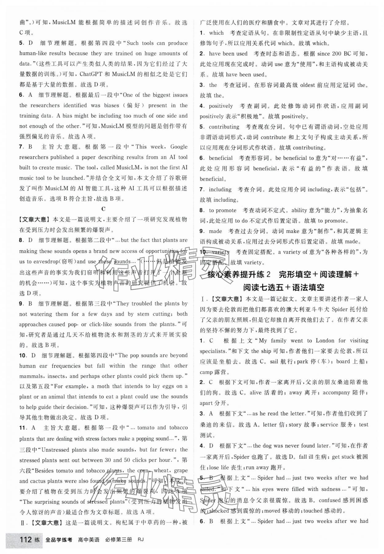 注:目前有些书本章节名称可能整理的还不是很完善,但都是按照顺序排列的,请同学们按照顺序仔细查找。练习册 2025年全品学练考高中英语必修第三册人教版 答案主要是用来给同学们做完题方便对答案用的,请勿直接抄袭。