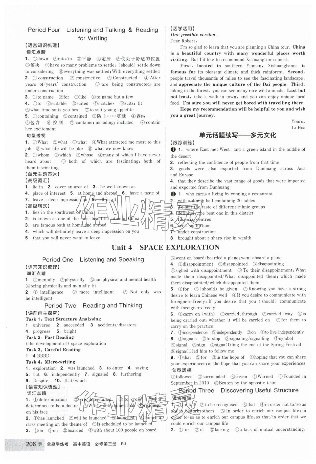 注:目前有些书本章节名称可能整理的还不是很完善,但都是按照顺序排列的,请同学们按照顺序仔细查找。练习册 2025年全品学练考高中英语必修第三册人教版 答案主要是用来给同学们做完题方便对答案用的,请勿直接抄袭。